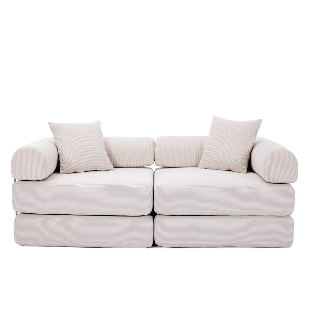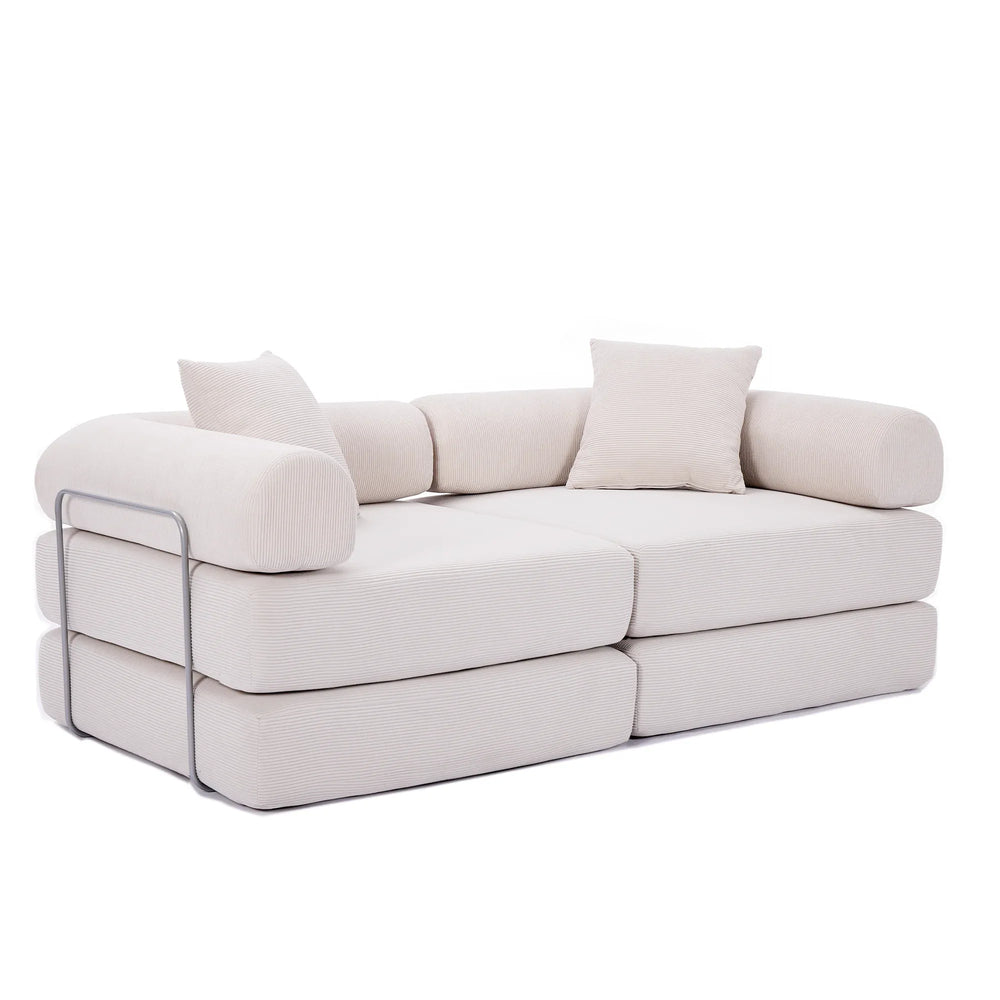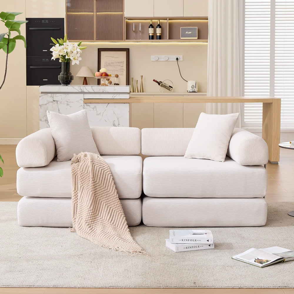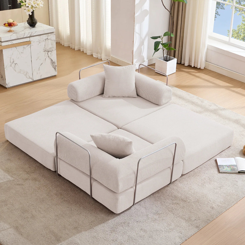 Maximize your living space with this innovative modular sofa bed, perfectly designed for apartments and small rooms. Featuring four separate foldable modules, this modern sofa adapts effortlessly from a comfy two-seat couch to individual chairs or a full-size mattress, offering versatile seating and sleeping solutions. Upholstered in durable beige corduroy fabric, it combines soft plushness with lasting wear resistance for daily comfort. The sturdy iron frame and anti-slip pads ensure stable support on any floor without the need for legs or assembly. Whether you're reading, working, relaxing, or hosting guests, this convertible sofa bed simplifies your lifestyle while adding a touch of retro-modern style. Elevate your space with smart design and cozy comfort today.
