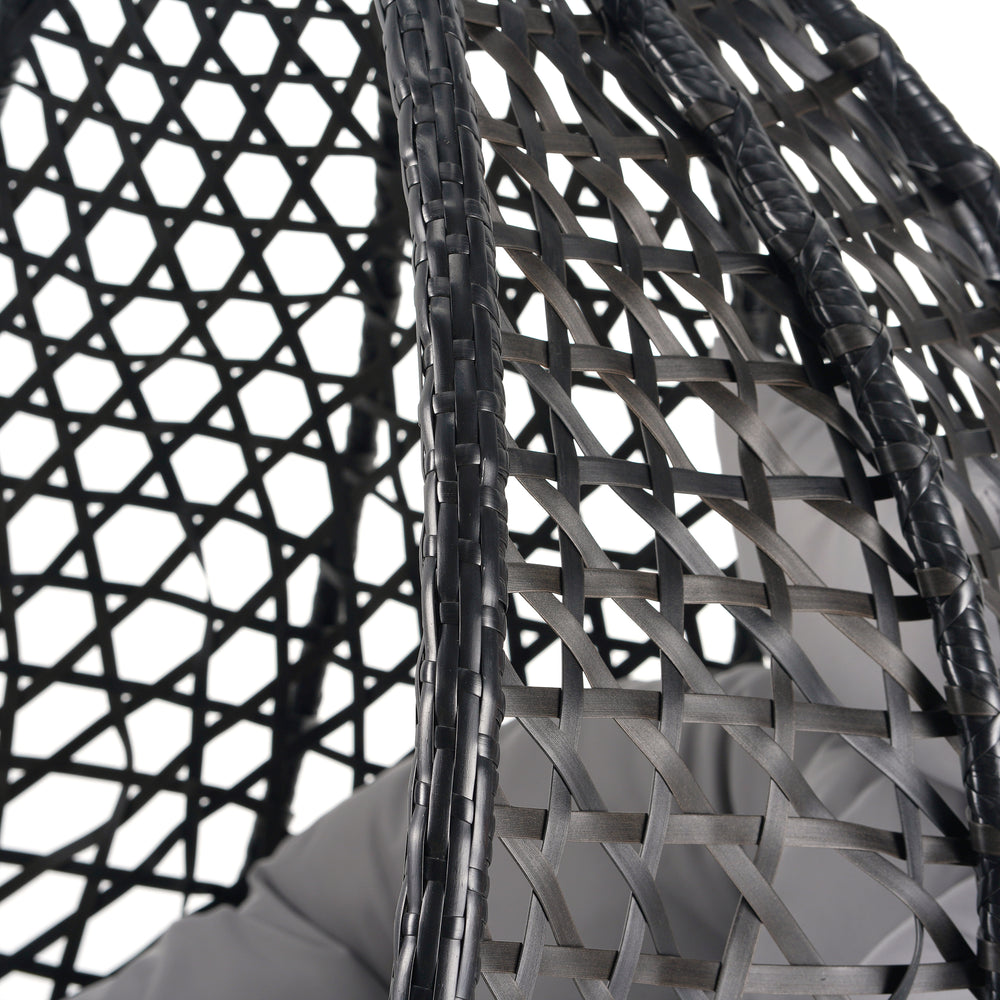 Unwind anywhere with this durable hanging egg chair, crafted to blend comfort and style for indoor and outdoor spaces. Featuring a sturdy iron frame and a wide, stable base, it guarantees secure support and long-lasting stability. The high-quality HDPE rattan weave mimics natural texture while resisting fading, cracking, and moisture—ideal for year-round use on your balcony, garden, or bedroom. Its thick, water-repellent polyester cushion offers plush softness and is removable for easy cleaning. Designed with a foldable frame, this chair is simple to assemble and store, fitting seamlessly into any space. Whether reading, relaxing, or enjoying a nap, elevate your comfort with this versatile hammock chair today.