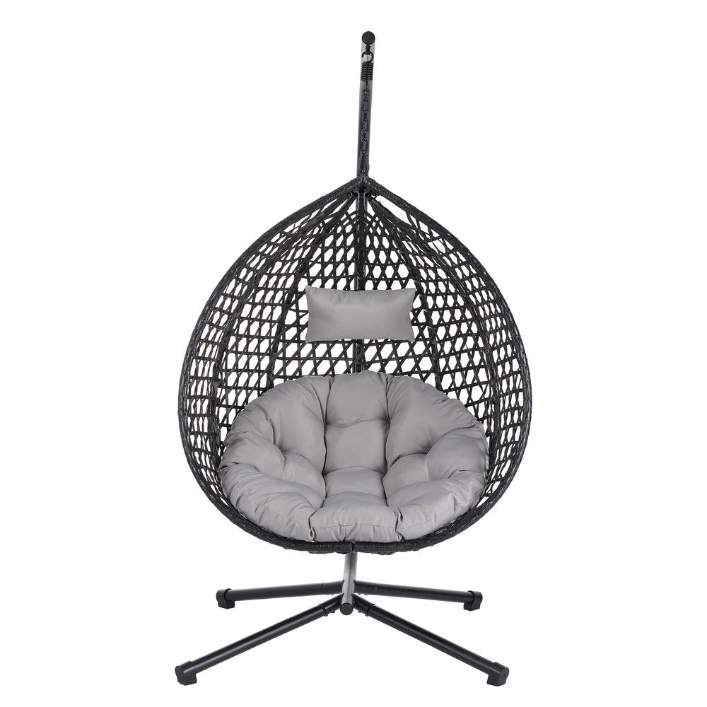Foldable HDPE Rattan Hanging Egg Chair With Cushion