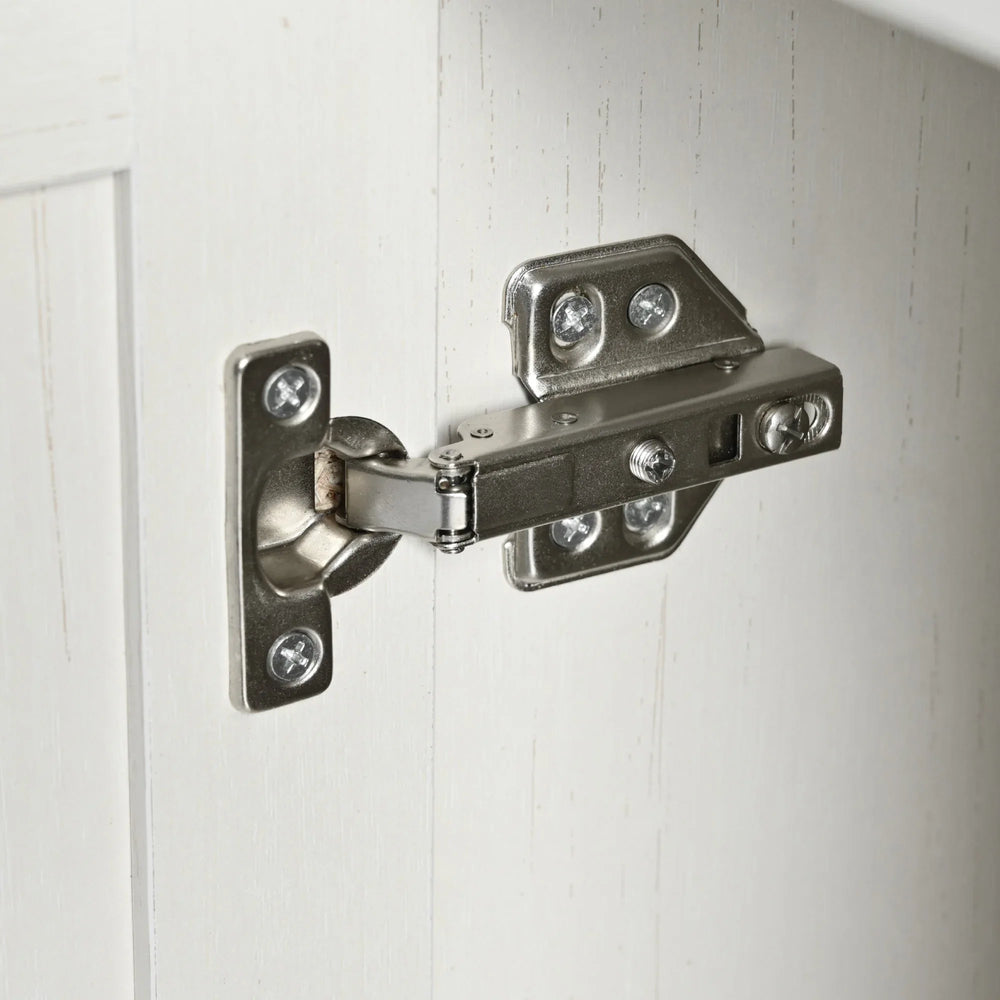 - Metal Hardware Accents: Retro metal handles, hinge detailing, and towel rack add elegance.
