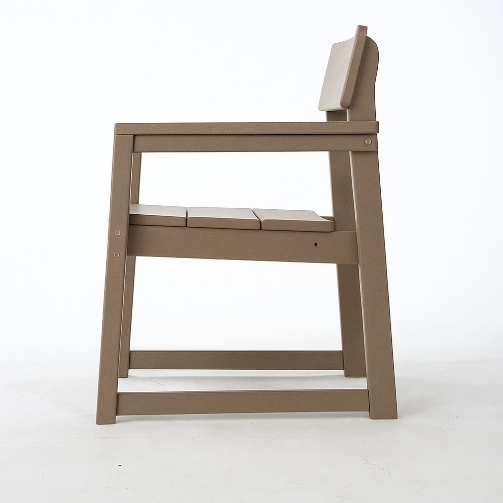 Bring stylish, durable seating to your garden or outdoor space with these modernist HDPE outdoor armchairs. Crafted from 100% recycled high-density polyethylene lumber, these chairs offer exceptional weather resistance and low maintenance, making them perfect for year-round outdoor use. The antique wood color finish provides a warm, natural look that complements any décor, while the sturdy frame supports comfortable seating with a distinctive backrest for added support. Designed as part of a multiple-chair seating group, this set blends functionality and aesthetic appeal for patios, gardens, or dining areas. Customizable options allow you to tailor the chairs to your specific style and needs. Elevate your outdoor relaxation today with these eco-friendly, classic-inspired armchairs.