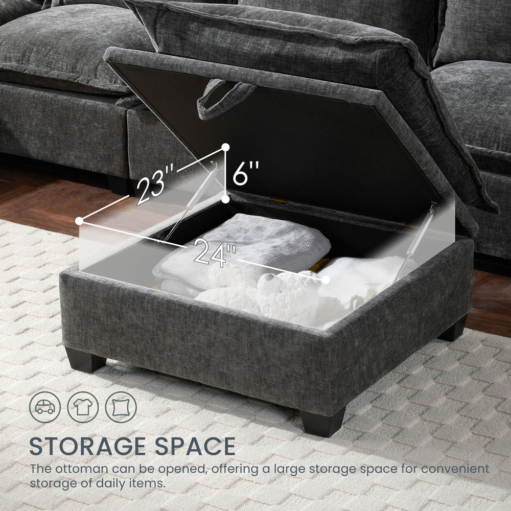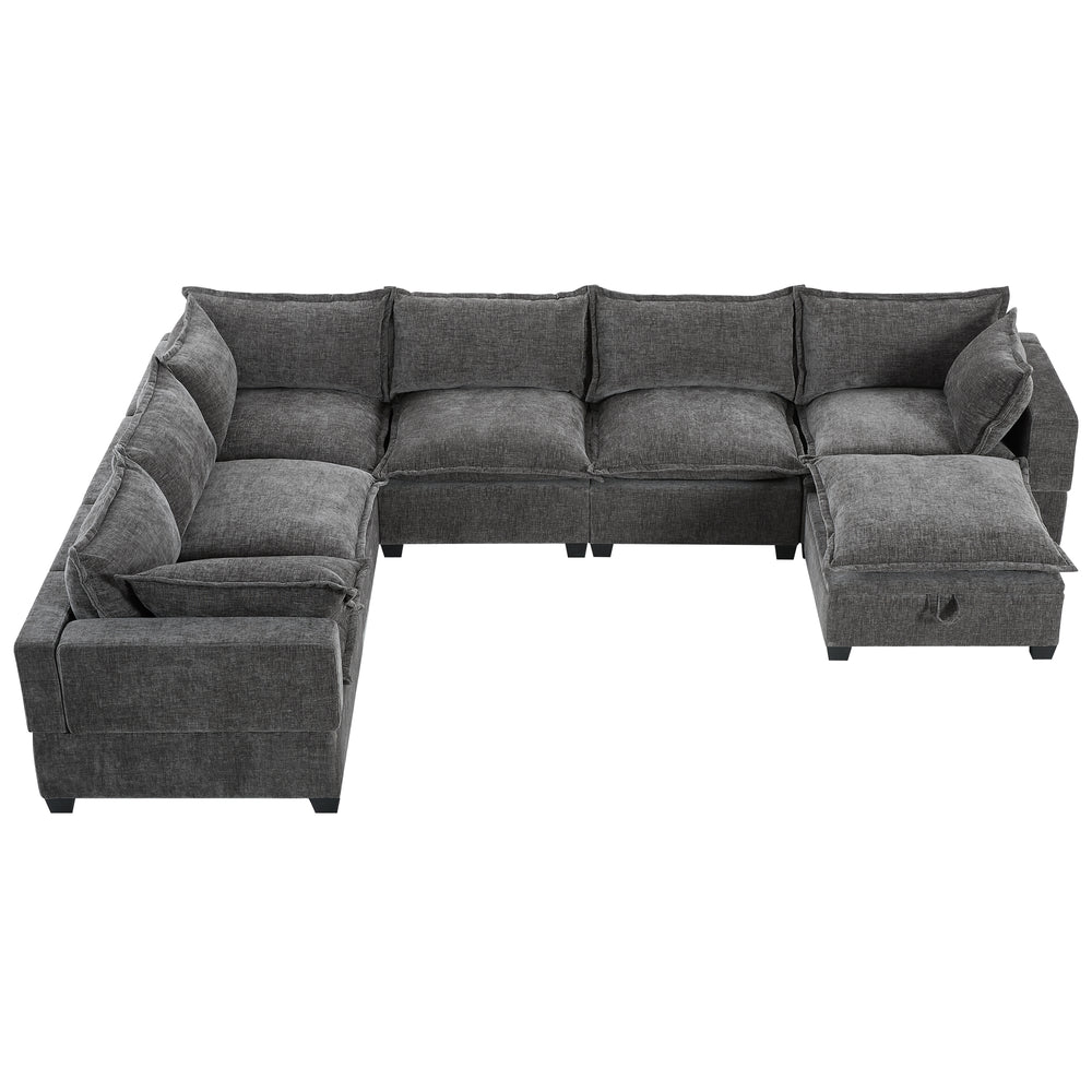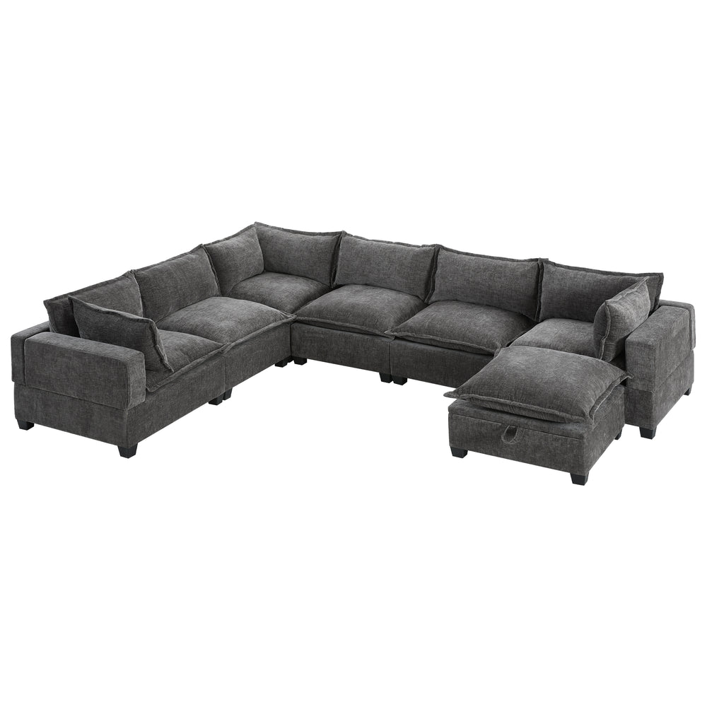 Modular 7-Seat Chenille Sectional Sofa With Storage Ottoman