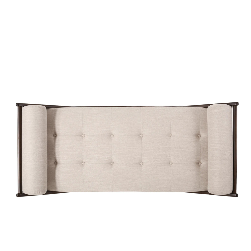 Beige Fabric Button Tufted Bentwood Chaise Lounge