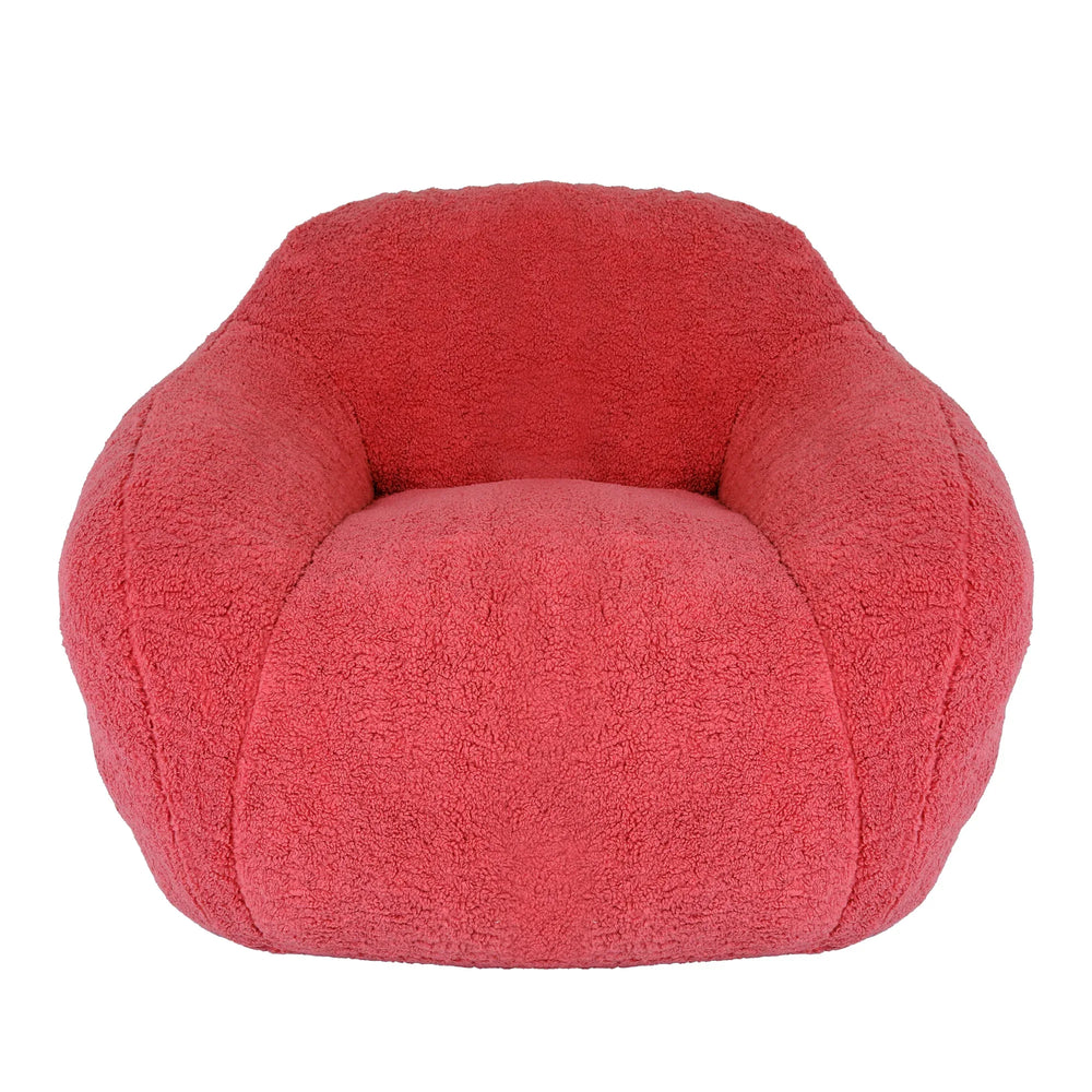 This spacious adult bean bag chair features soft rose red teddy fabric with memory foam and high-density cotton filling for warm, comfortable seating. Ergonomically designed with thick armrests and anti-slip bottom, it’s ideal for relaxing in living rooms or bedrooms.