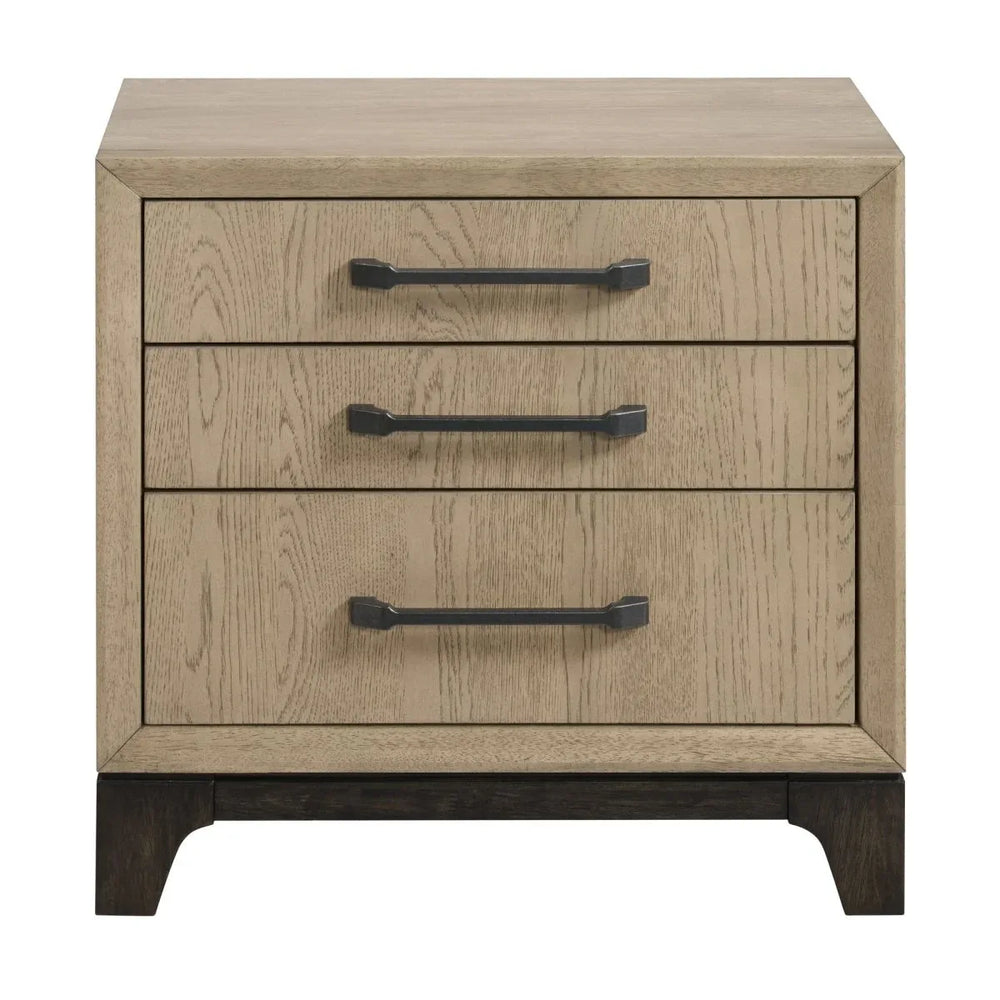 Combine style and functionality with this elegant brown wood nightstand, perfect for modern bedrooms. Featuring three spacious drawers, including a felt-lined top drawer to protect delicate items, it keeps your bedside essentials organized and within reach. The sleek black feet and metal drawer pulls add a touch of contemporary sophistication that complements any décor. Integrated with a dual USB charging outlet, this nightstand ensures your devices stay powered without cluttering your space with extra cords. Its compact size—27 inches wide, 17 inches deep, and 26.5 inches tall—fits comfortably beside most beds, making it a versatile addition to your sleep environment. Upgrade your nighttime routine and keep everything you need close at hand. Elevate your bedroom today.