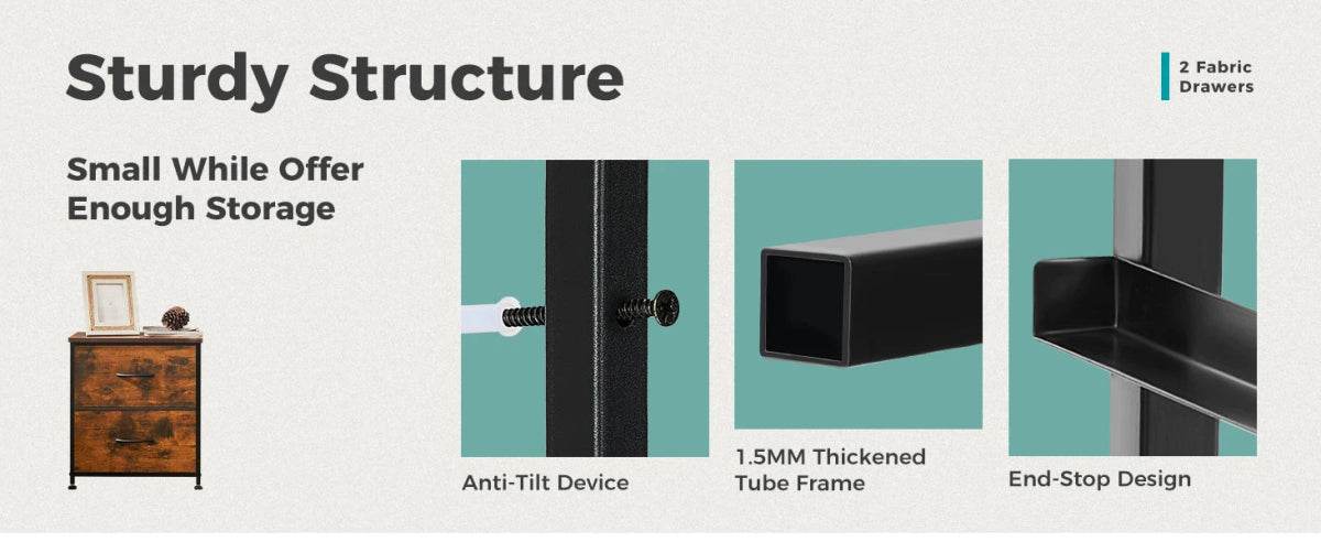 - Large Storage Capacity: Two removable fabric drawers for organizing clothes, books, and more.