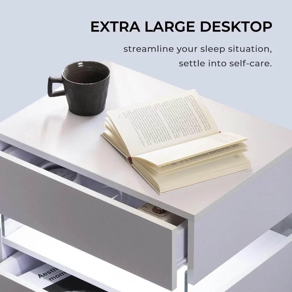 Enhance Your Bedroom with This Modern White LED Nightstand Set of 2