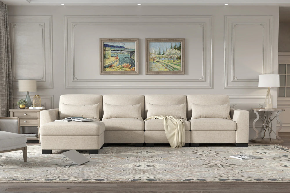 Experience Versatile Comfort with Our 130" Beige Modular L-Shaped Sofa