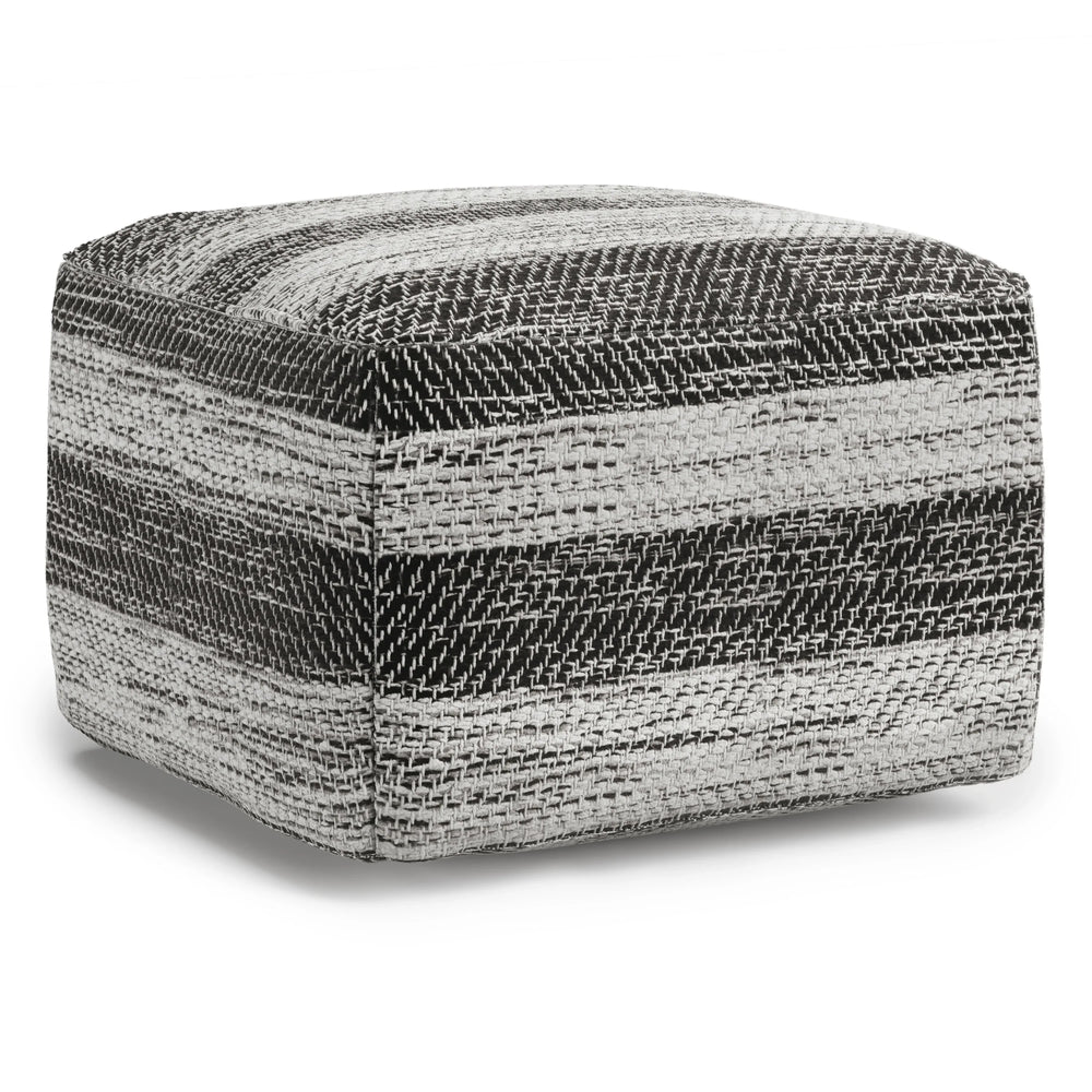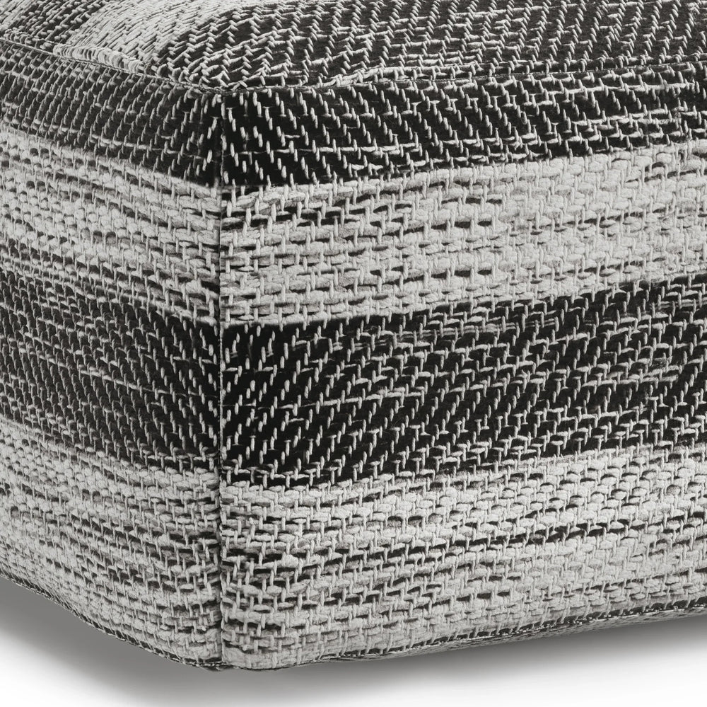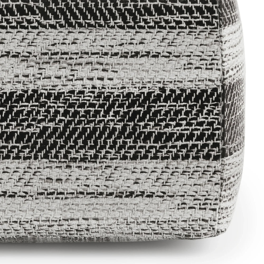 This gray melange square pouf features hand-woven cotton fabric and dense polystyrene bead filling for firm, shape-retaining support. Its versatile design is ideal for extra seating or use as an ottoman, delivered fully assembled for easy setup.