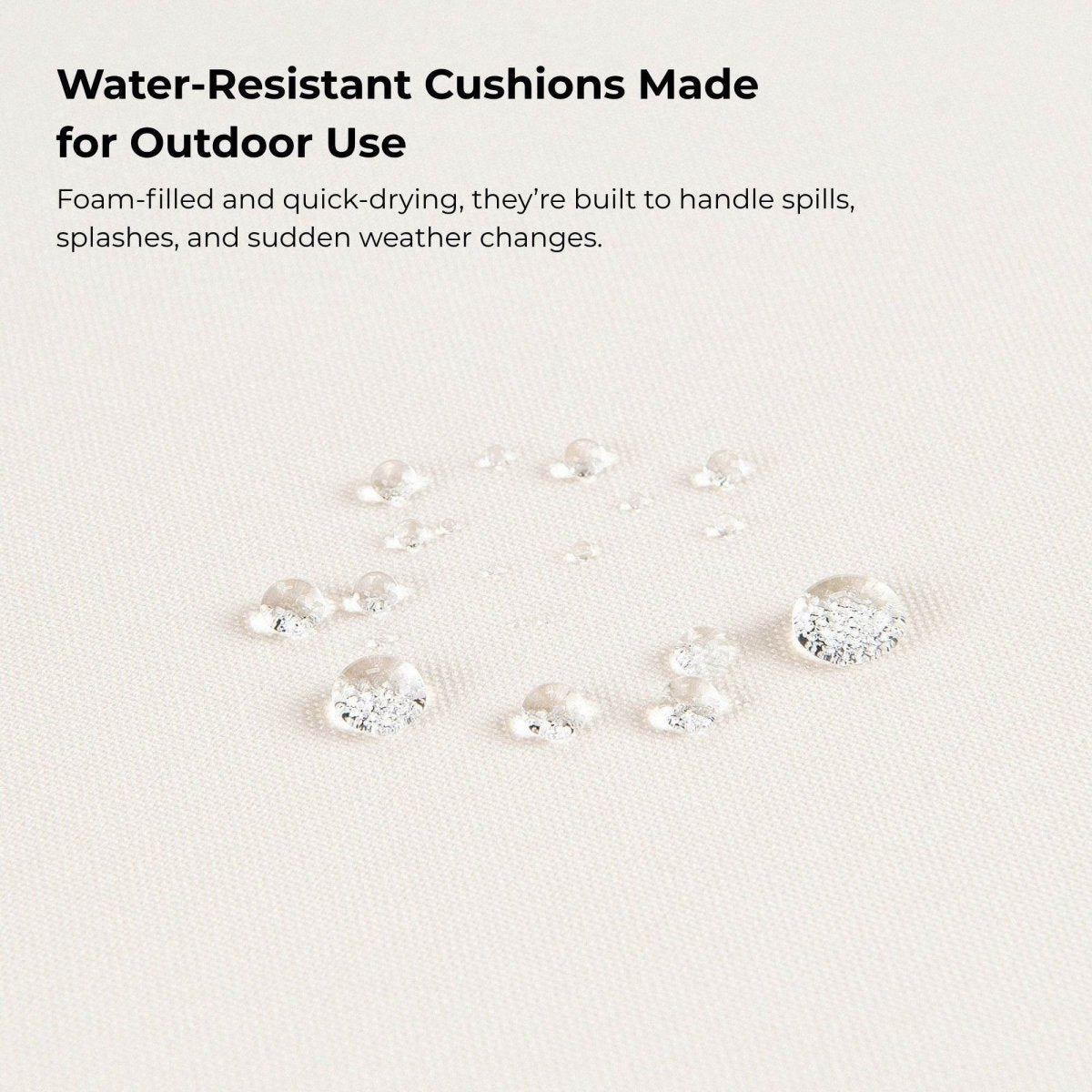 • Water-Resistant Beige Cushions: Polyester fabric with removable covers for easy cleaning.