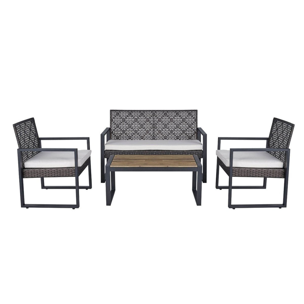 Modern 4-Piece PE Rattan Acacia Wood Outdoor Furniture Set - Omega Lifestyles