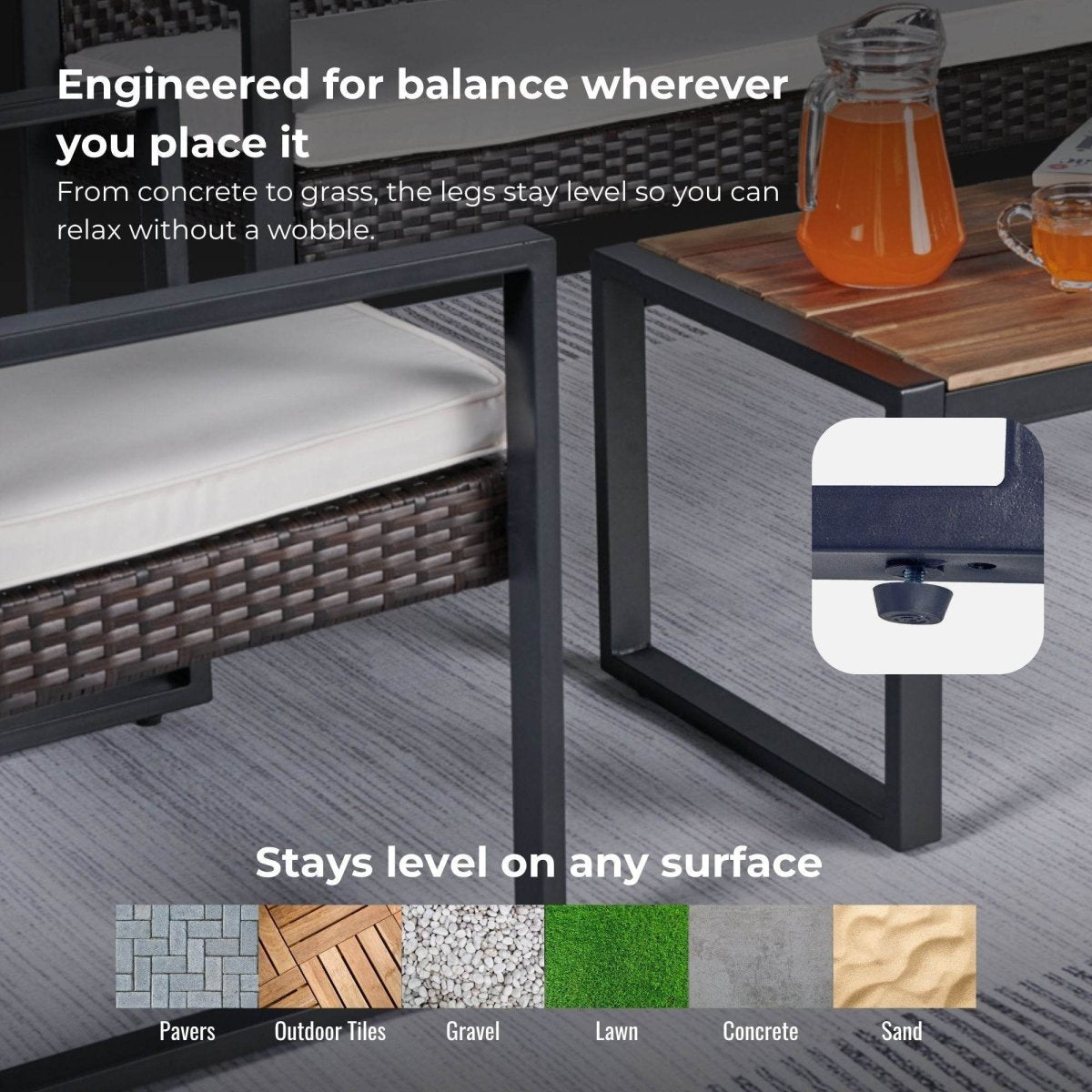 Modern 4 - Piece PE Rattan Acacia Wood Outdoor Furniture Set - Serenova - Omega Lifestyles