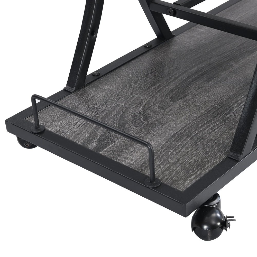 Bring a touch of industrial charm and practical function into your home with this sturdy kitchen bar cart. Crafted from durable iron with black and gray accents, it offers three spacious tiers perfect for organizing wine bottles, glassware, and serving trays. Designed on smooth-rolling casters, this mobile serving cart lets you effortlessly move refreshments from kitchen to dining area or living room. Its compact footprint at 44 inches long by 13 inches wide and 33 inches high (44.09" x 12.99" x 33.27") fits perfectly in tight spaces without sacrificing storage. Built with a solid metal frame and MDF shelves, it supports heavy loads while adding a sleek, industrial aesthetic to your space. Easy assembly with included hardware makes setup hassle-free. Whether hosting a party or enjoying cozy nights at home, elevate your serving experience today.