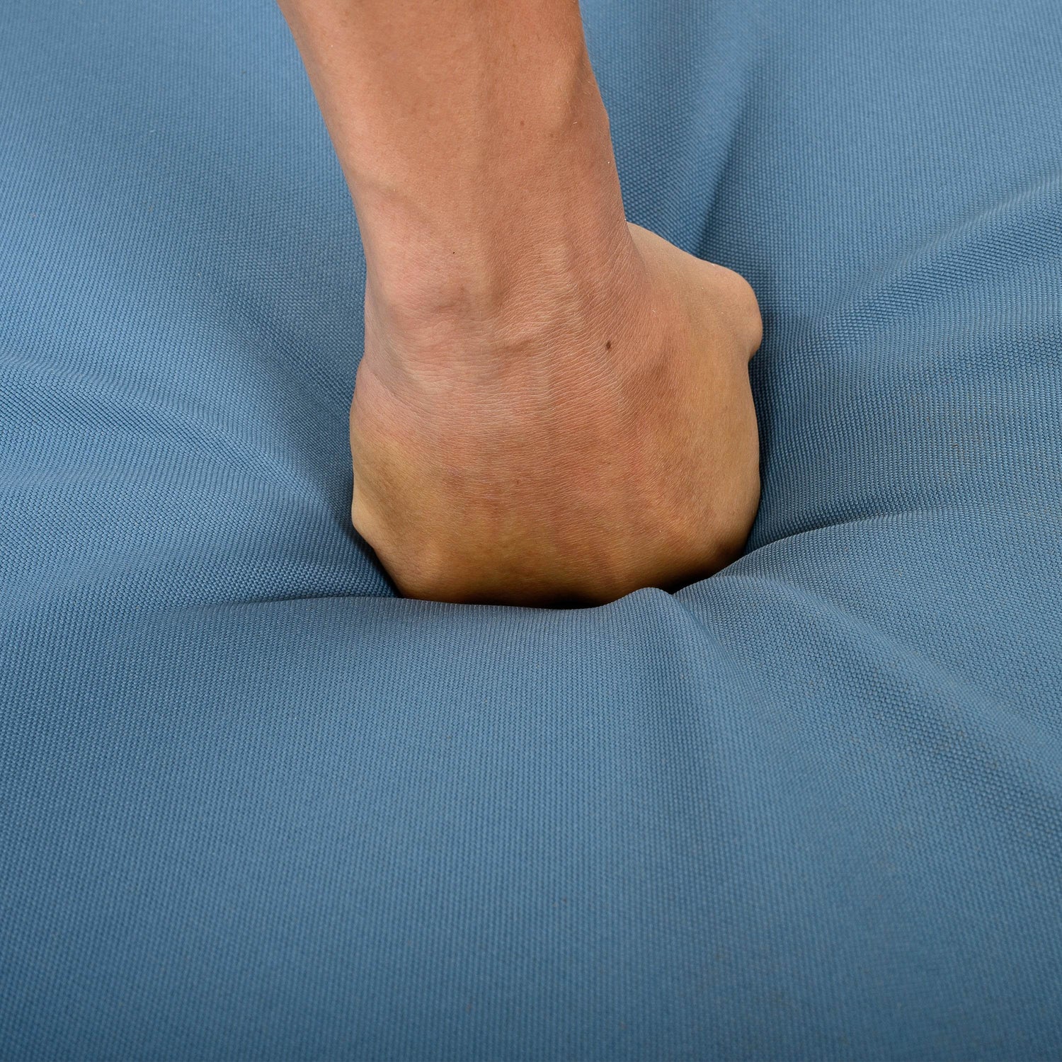 • Water-resistant blue cushion measures 24.4 by 23.6 inches for comfort
