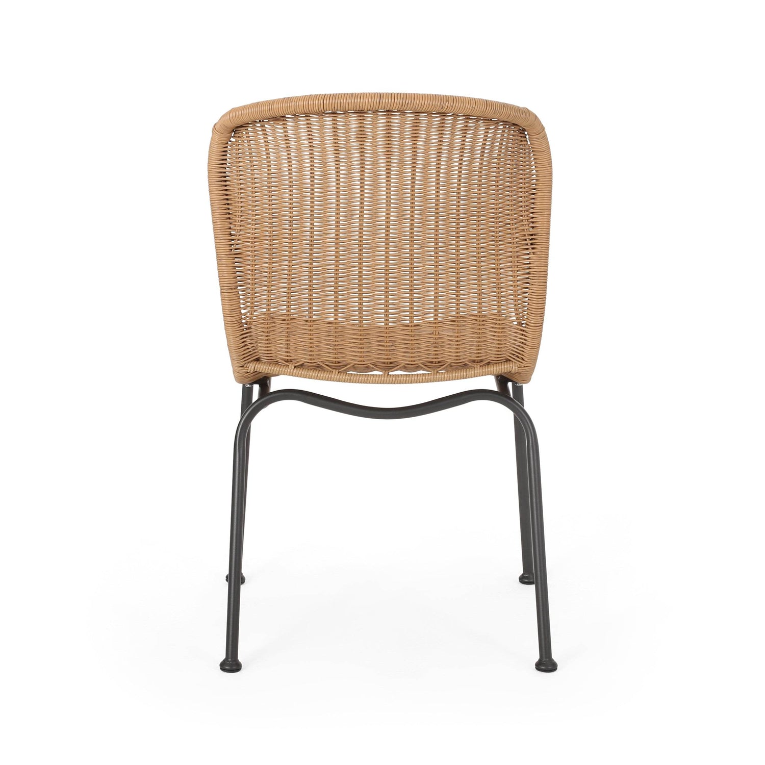 Light brown rattan outdoor chairs feature a stylish wicker weave and curved scroll-back design, delivering comfortable seating and durable texture to elevate any outdoor dining or patio space with cozy relaxation and lasting charm.
