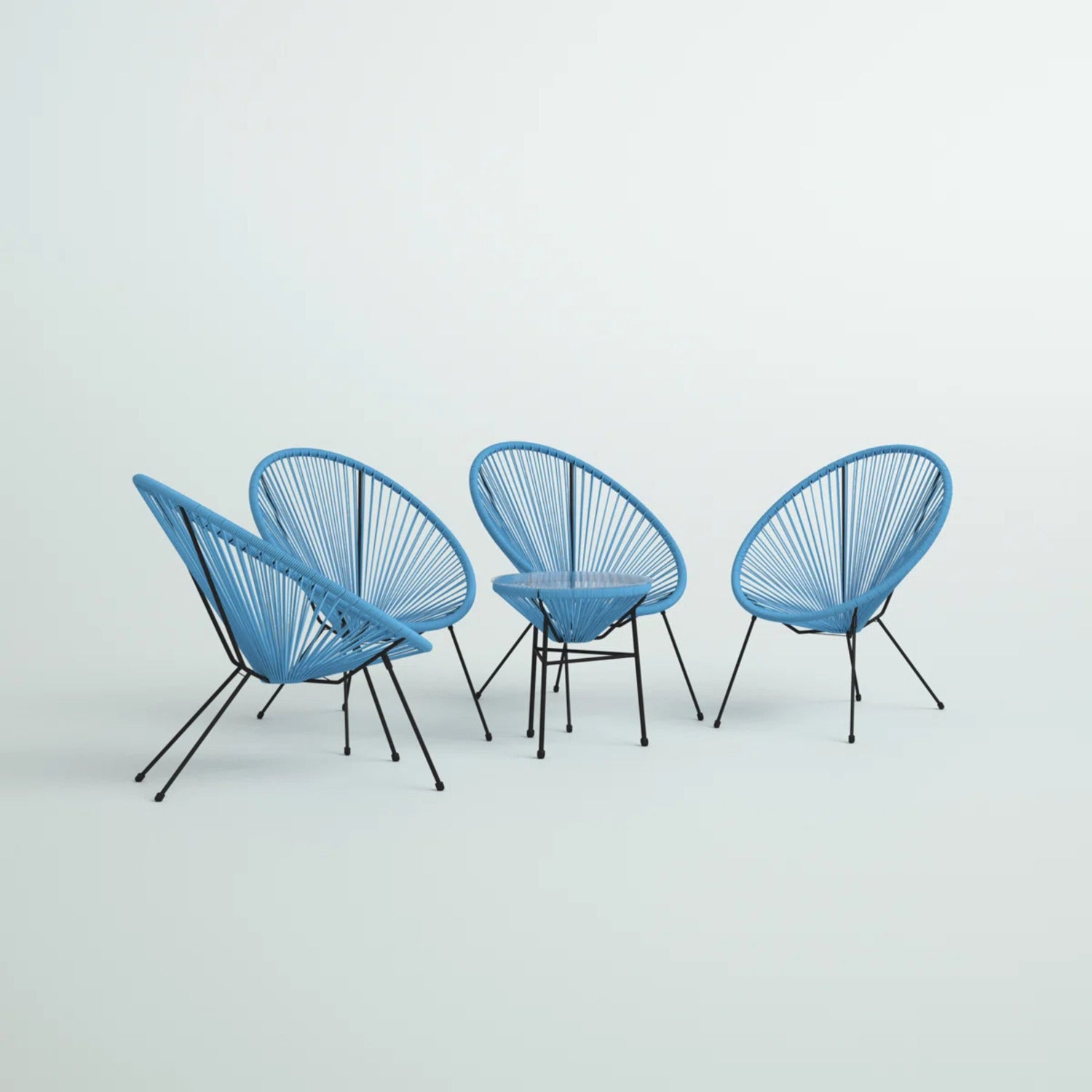 Upgrade your patio or indoor lounge with this exquisite 5-piece outdoor conversation set inspired by the iconic Papasan chair design. Featuring four ergonomically crafted lounge chairs, this set offers superior comfort and breathability with its open-weave construction. The powder-coated steel frames provide exceptional rust and weather resistance, ensuring durability through all seasons. A sleek, tempered glass table perfectly complements the turquoise seating, offering a modern spot to place drinks or snacks while you socialize. Lightweight yet sturdy, each chair supports up to 250 lbs, making it ideal for gatherings with friends or family. Easy assembly and low-maintenance materials mean you’ll spend less time setting up and more time relaxing. Elevate your outdoor experience today with this stylish and functional seating group.