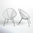 Bring timeless style and refreshing comfort to your patio or balcony with this set of two Mid-Century Modern outdoor lounge chairs. Crafted with lightweight yet sturdy aluminum frames, these chairs feature handwoven seats that offer breathable support without the need for cushions. The unique egg-shaped design evokes the jet-set resort vibe of the 1950s, making your outdoor space feel like a coastal retreat. Built to brave the elements, the weather-resistant construction resists rain, sun, and UV rays for lasting durability. Nylon scratch-free feet protect your floors and keep the chairs stable. Measuring 28 inches high, 26 inches wide, and 35 inches deep, each chair is perfectly sized for relaxing solo or enjoying conversation. Easy to maintain with simple hand washing, this lounge chair set combines style, comfort, and resilience seamlessly. Elevate your outdoor relaxation today with these iconic chairs.
