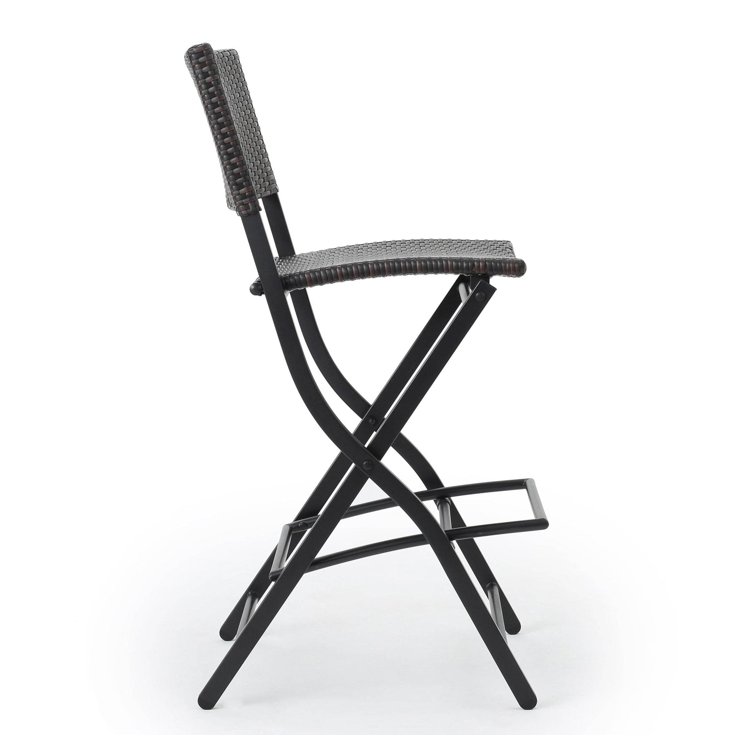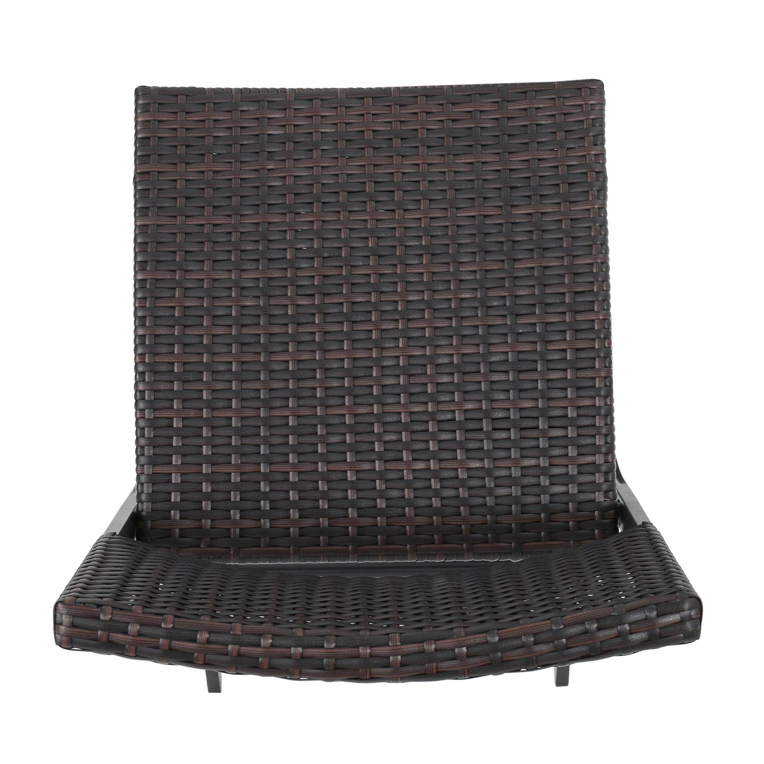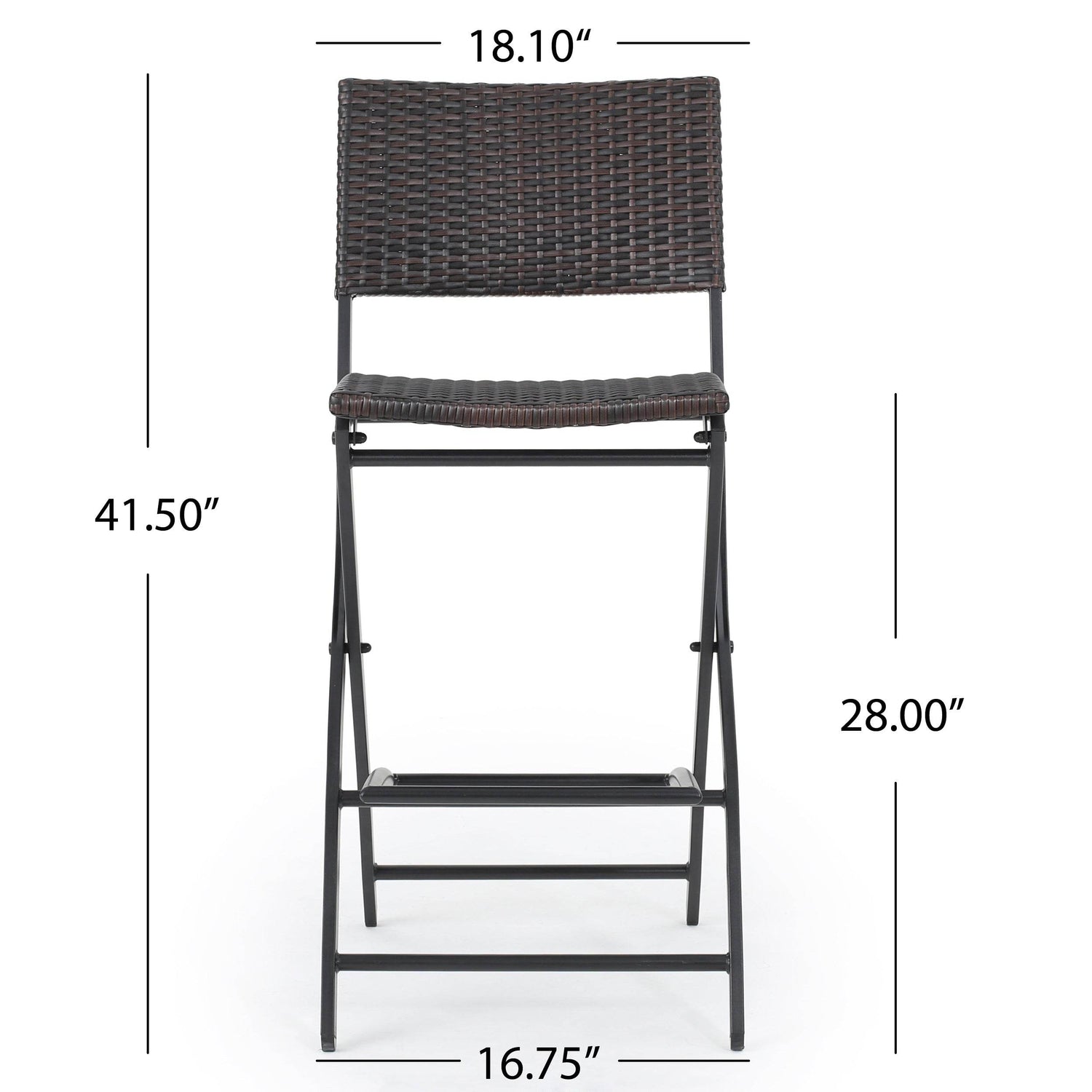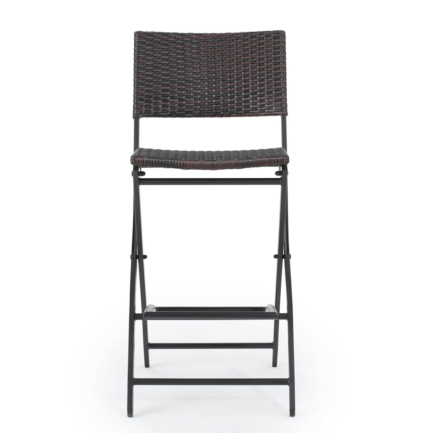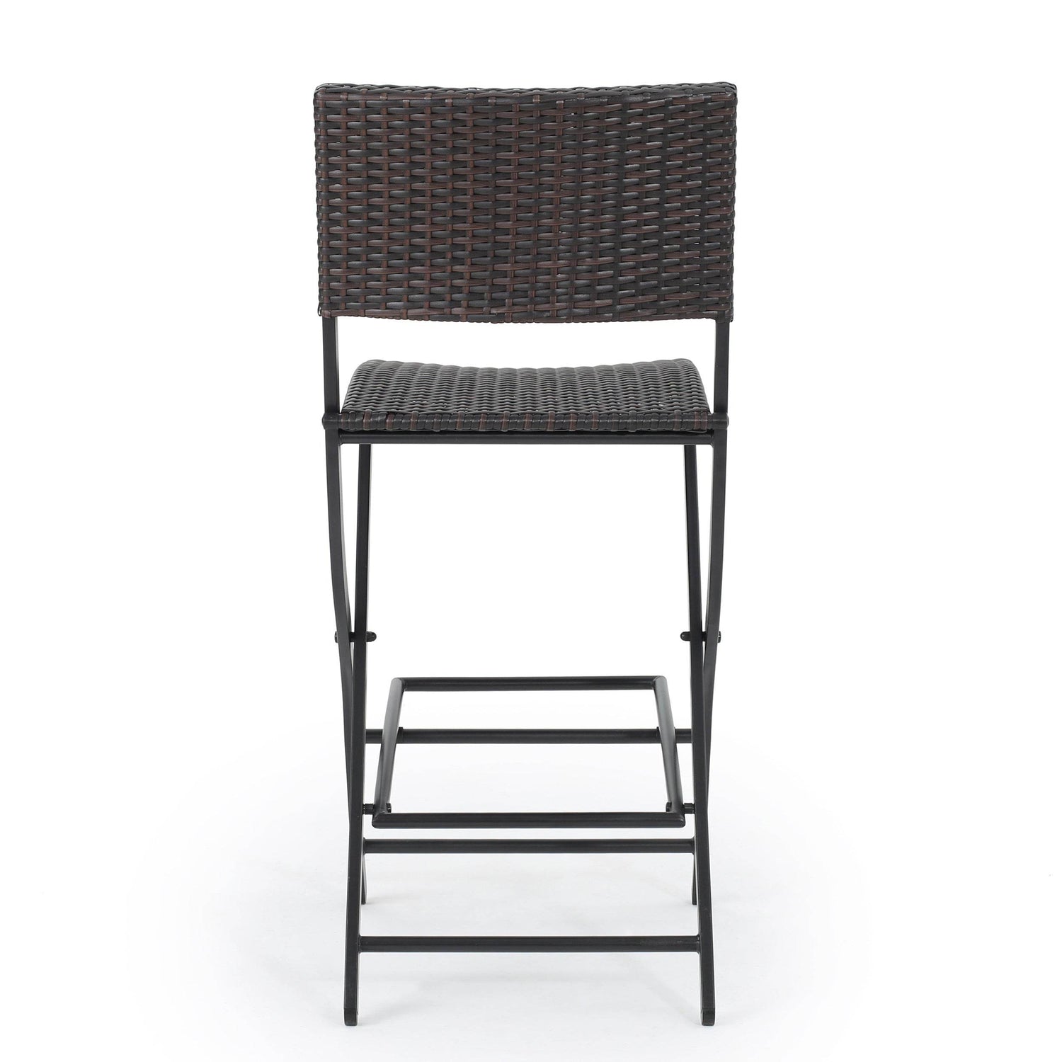 Contemporary foldable outdoor barstools crafted from durable PE rattan and iron offer weather-resistant comfort and footrest support. Ideal for garden or patio use, this two-person seating set enhances outdoor relaxation with a classic wicker weave and compact storage.