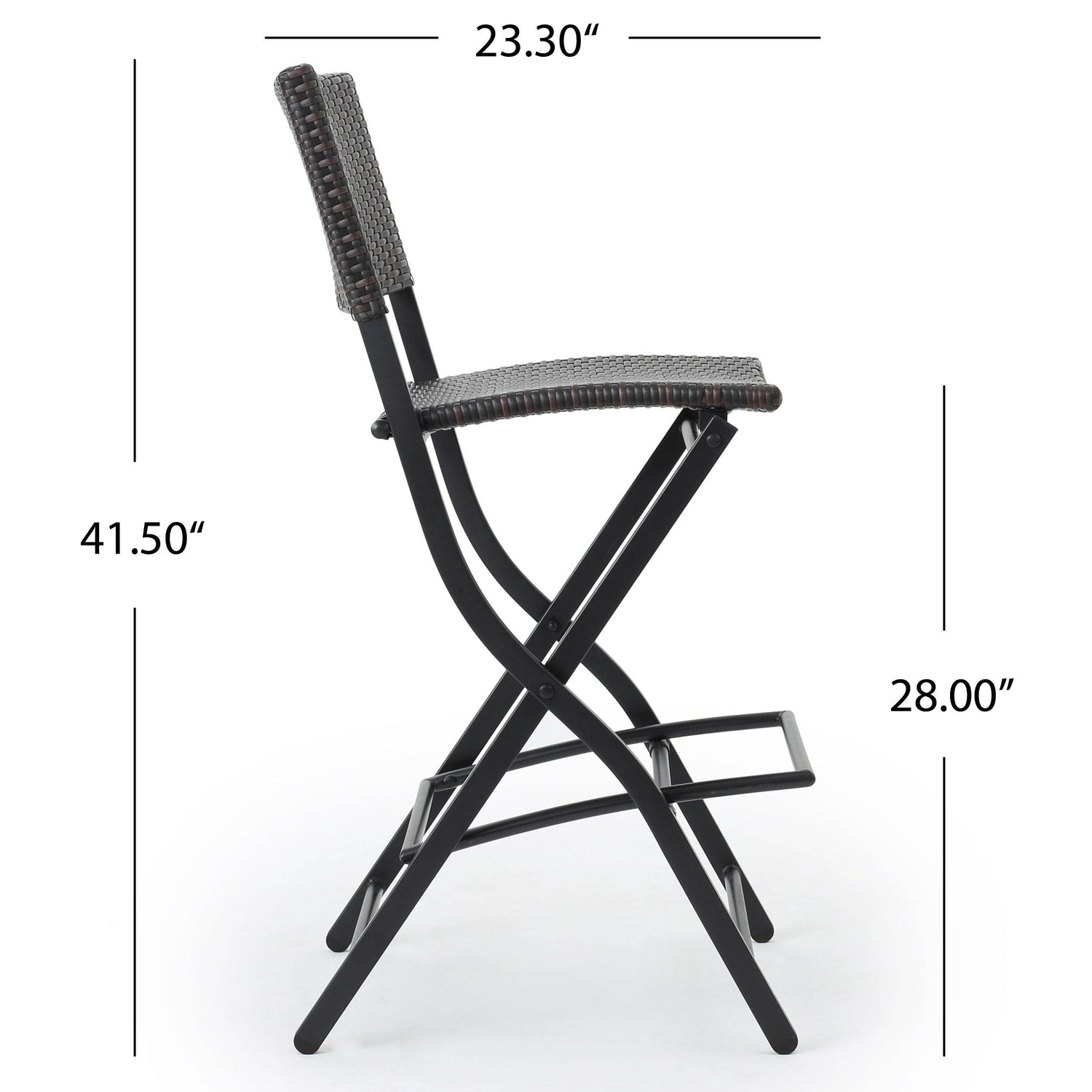 Upgrade your patio or garden space with this set of two outdoor wicker barstools, crafted for both comfort and convenience. Featuring durable PE rattan woven expertly over a sturdy iron frame, these barstools deliver long-lasting weather resistance and contemporary tropical style. Designed with a comfortable footrest and a seat height of 28 inches, they provide perfect balance whether you’re enjoying a casual drink or hosting guests. Their foldable design offers easy storage and portability, making them ideal for small spaces or on-the-go use. Lightweight yet strong at just under 13 pounds (12.7 lbs) each, these barstools combine functionality and elegance to elevate your outdoor living area. Transform your backyard seating today with these versatile, easy-to-store patio stools.