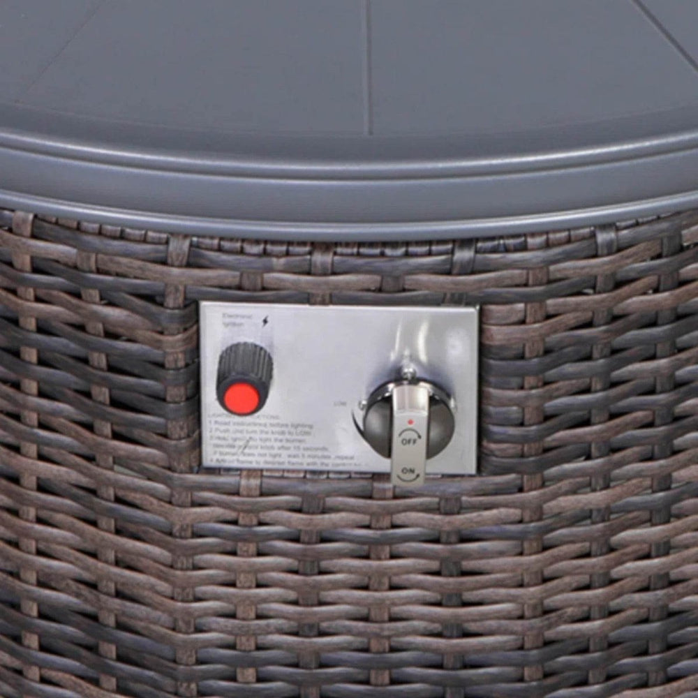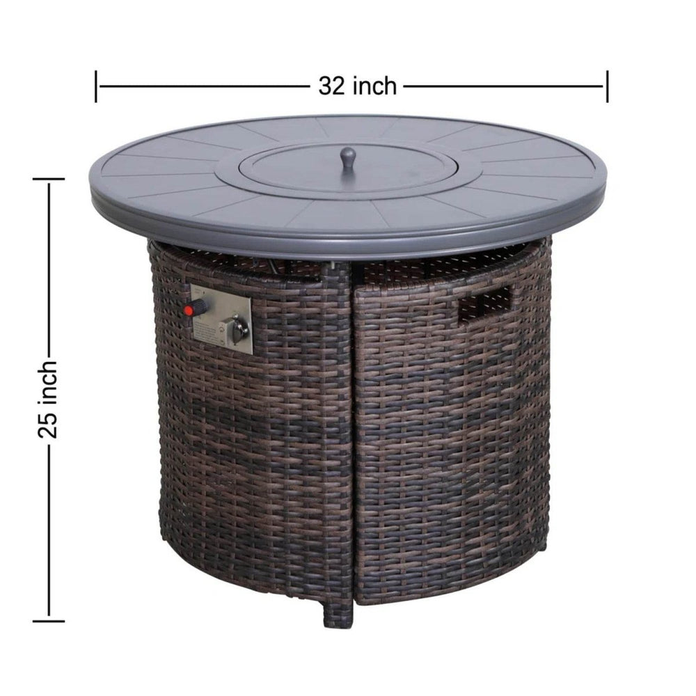 Experience cozy evenings and stylish outdoor living with this modern fire pit table. Crafted from rustproof aluminum and durable wicker, it offers lasting weather resistance and a sleek espresso finish that complements any patio. The stainless steel burning area delivers a powerful 55,000 BTU output, providing ample warmth and a captivating flame for gatherings. Featuring a hidden propane tank compartment and push-button ignition, this fire pit combines convenience with sophisticated design. Its 25-inch height and 32-inch width create the perfect centerpiece for socializing or relaxing outdoors. Equipped with an adjustable flame and a protective lid, it lets you control the ambiance while maintaining safety. Bring warmth and elegance to your outdoor environment—ignite your evenings with this premium fire pit table today.