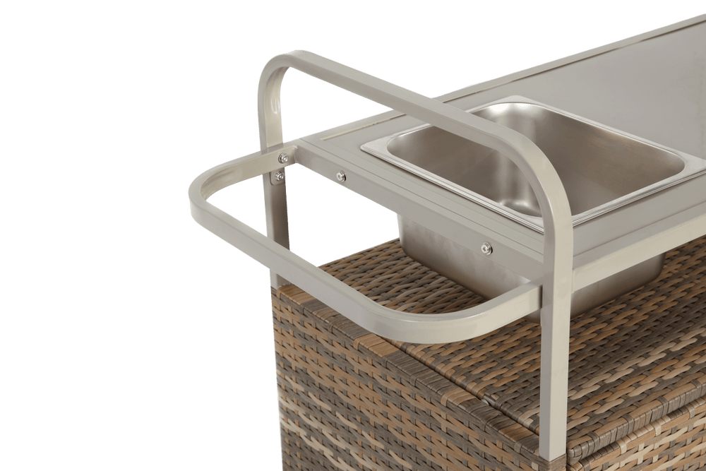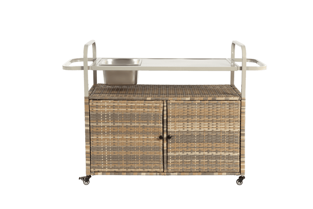 Outdoor Bar Table With Wicker Cabinet Steel Top Cart