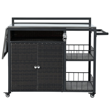 Multifunctional Outdoor Serving Cart With Foldable Tabletop