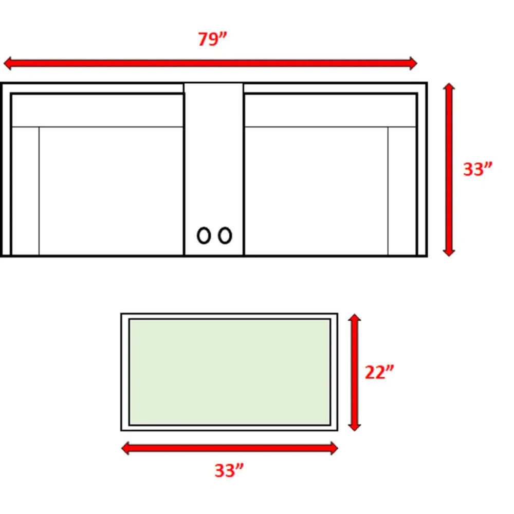 - Modular Loveseat: Two 26" H x 79" W (66 cm x 201 cm) corner chairs configurable together or apart