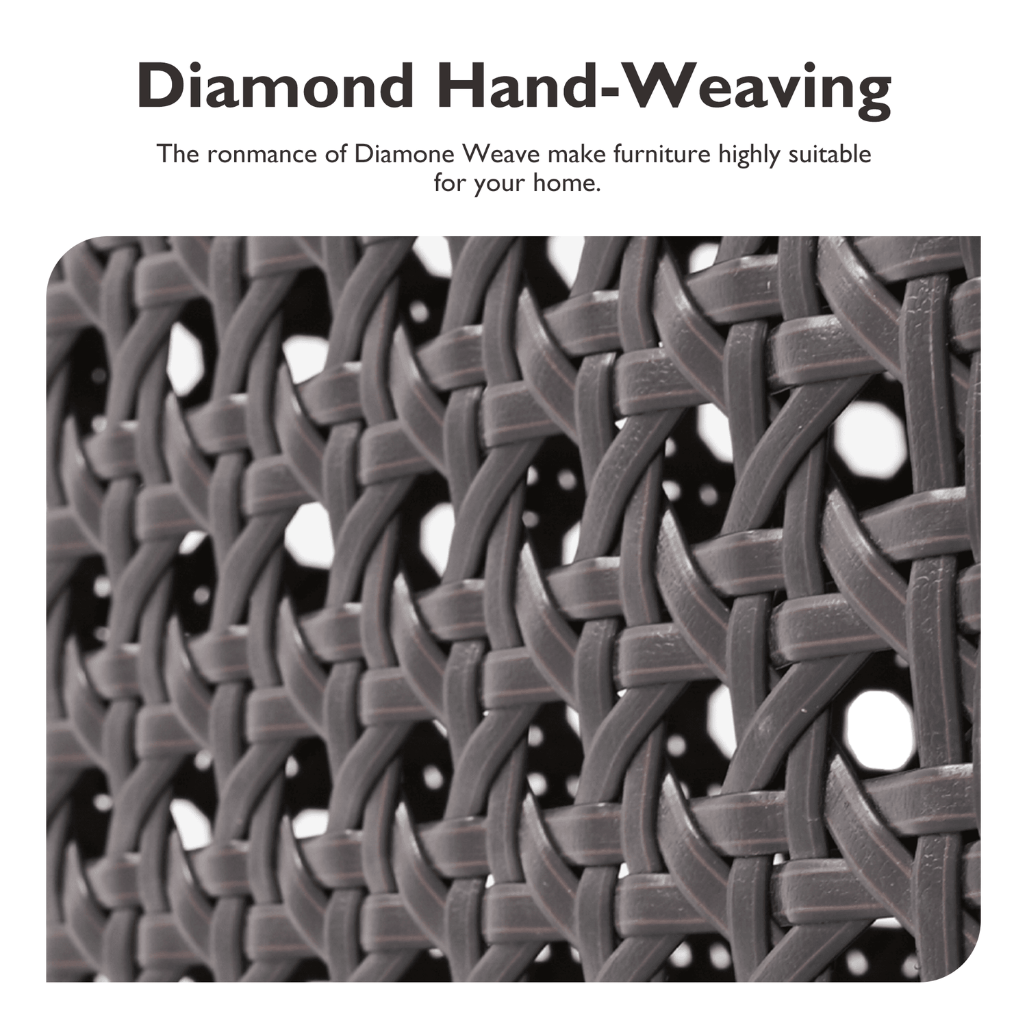 • UV-Resistant Diamond Weave Rattan: Rated for 1000 UV hours to prevent fading and cracking.