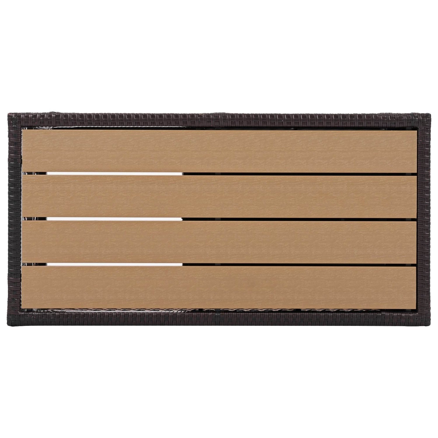• Extendable poly-wood coffee table includes foldable ice bucket for chilling beverages