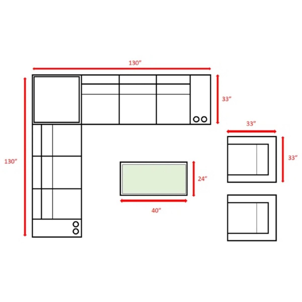 • Dimensions: 130 inches (330 cm) square footprint with 26-inch (66 cm) seat height.