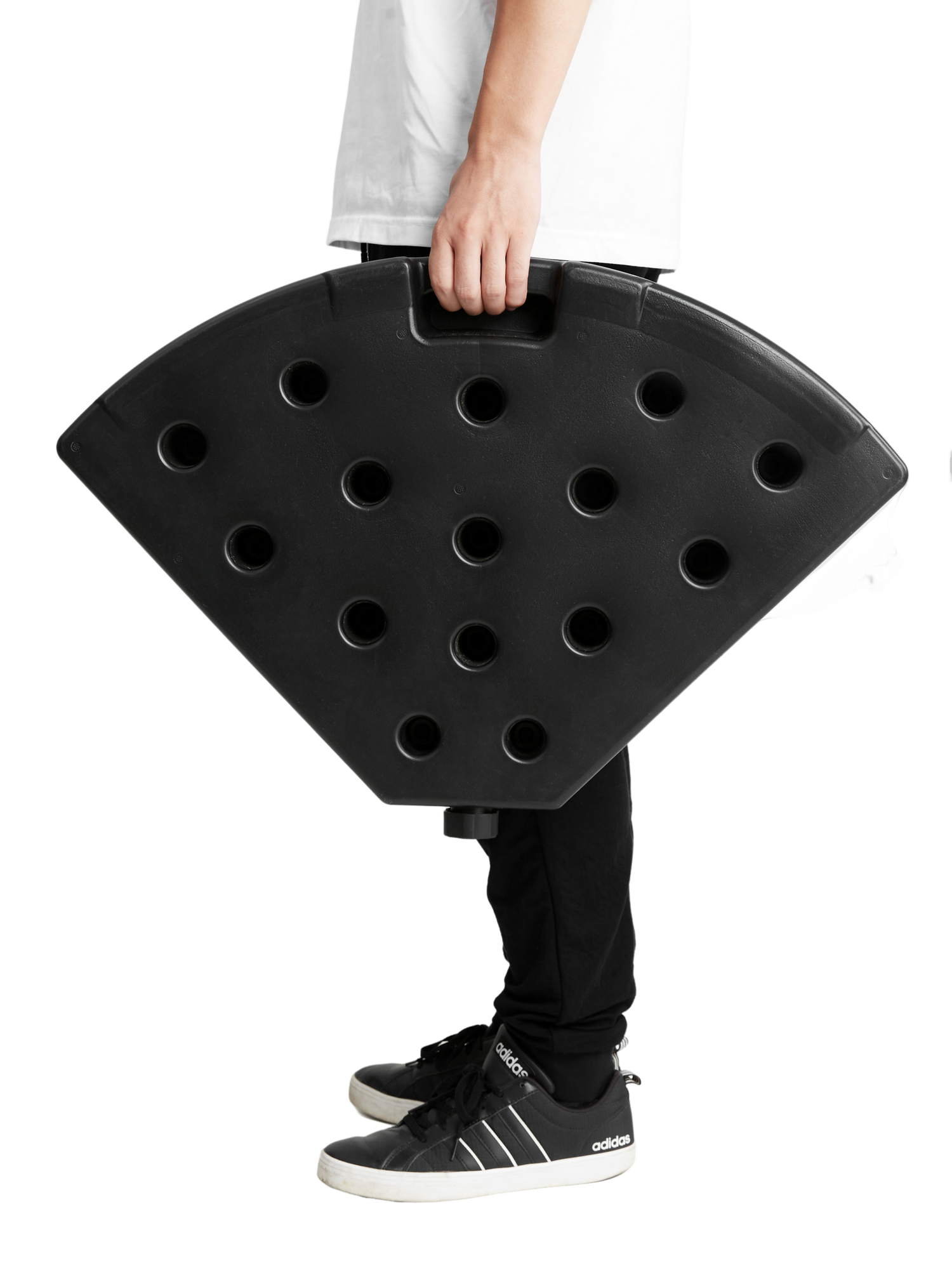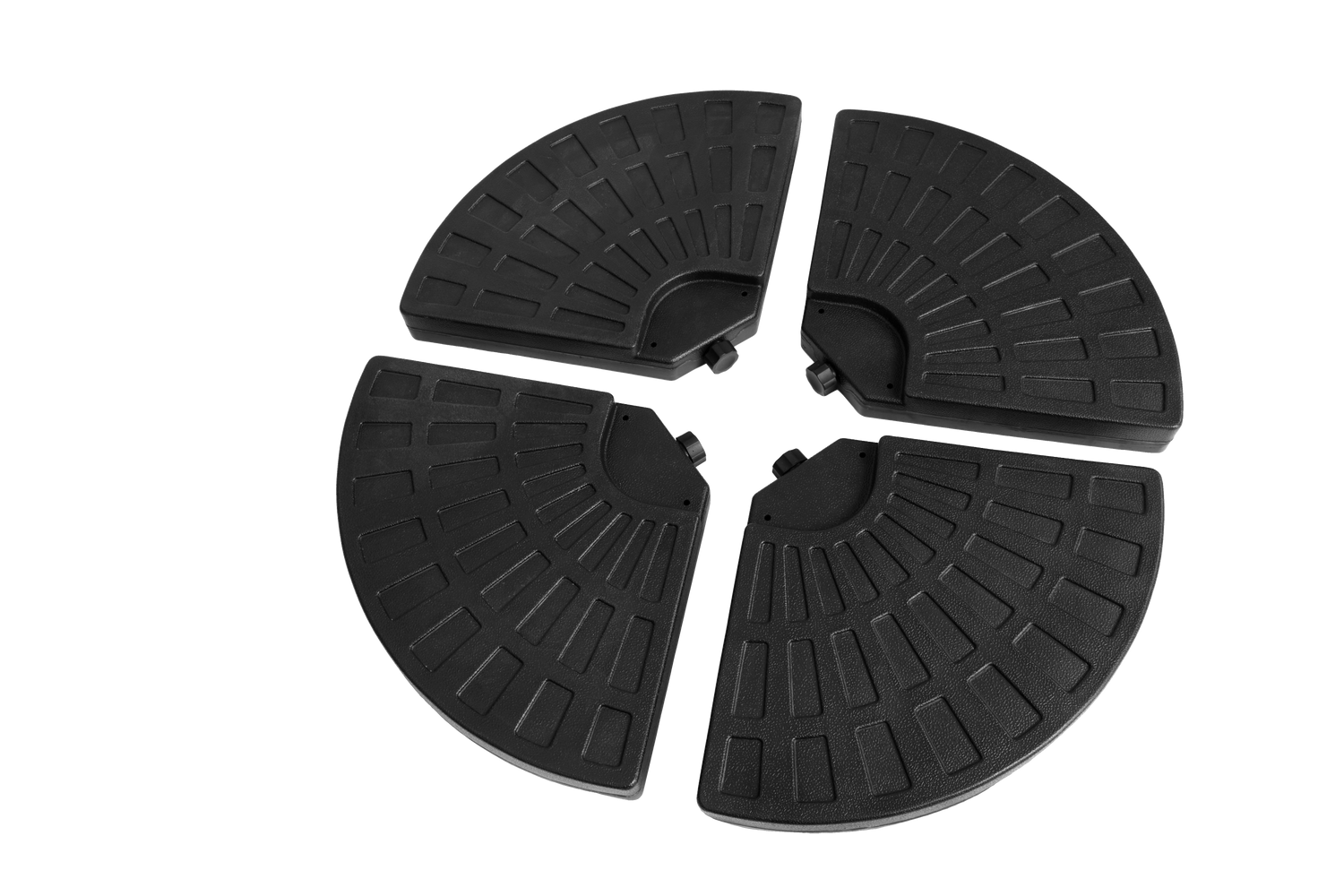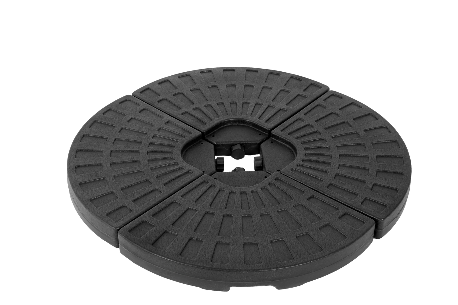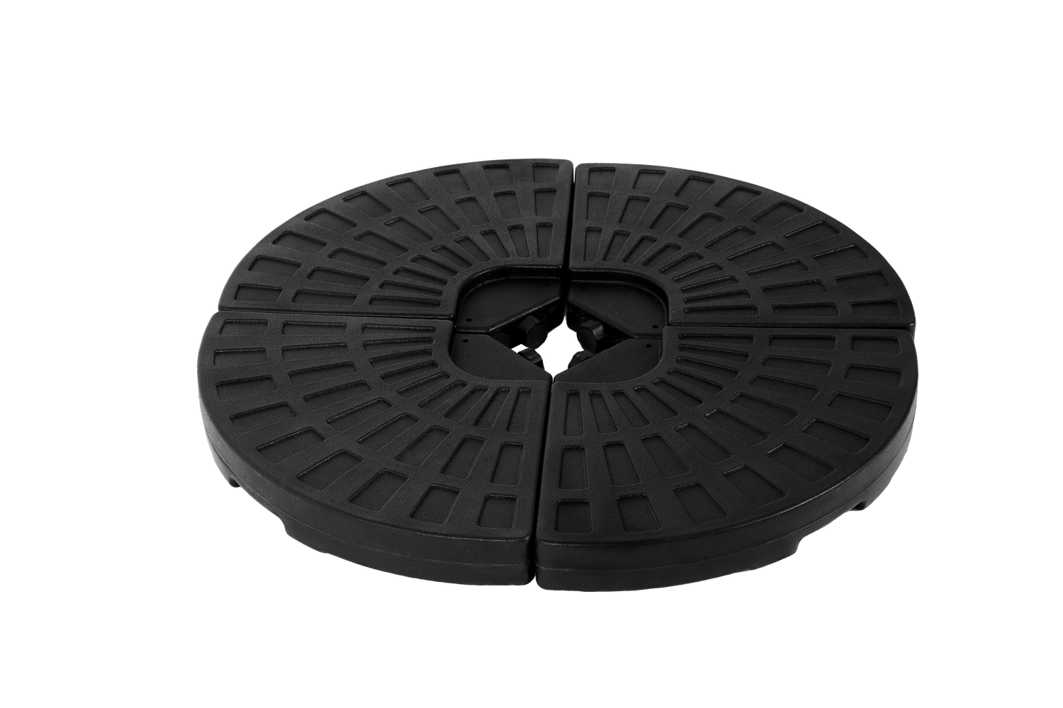 Keep your patio umbrella firmly anchored with this durable umbrella base designed for stability and ease of use. Crafted from sturdy black PE plastic, the base offers excellent weather resistance and crack protection, ensuring long-lasting outdoor performance. Its innovative 4-plate detachable design lets you customize weight by filling each plate with up to 42 pounds of sand or 11.3 liters of water, providing reliable support for most cantilever offset patio umbrellas. Featuring easy-fill spouts with waterproof seals, filling and sealing are quick and mess-free. Elevate your outdoor comfort and enjoy worry-free shade with a base built to withstand sun, rain, and moisture. Upgrade your umbrella setup today for safer, steadier relaxation.