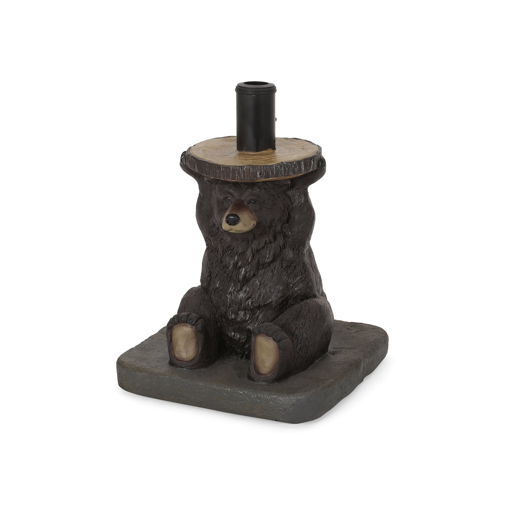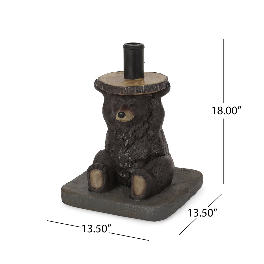 Secure your patio umbrella with the BEAR Umbrella Base, expertly crafted from lightweight concrete with a durable resin finish. Its sturdy 55.9-pound (25.4 kg) construction ensures superior stability, keeping your umbrella firmly in place even on windy days. The dark brown color and hand-crafted details add a subtle, sophisticated charm to your outdoor space. Designed with convenience in mind, this umbrella base arrives fully assembled with no additional setup required. Compact at 13.5 inches deep by 13.5 inches wide and 18 inches high, it fits seamlessly into any patio or garden setting. Elevate your outdoor comfort and enjoy shade without worry—upgrade your umbrella support today.