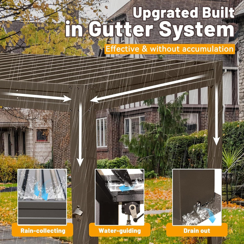 - Built-In Gutter System: Channels rainwater through hidden downspouts to keep your space dry
