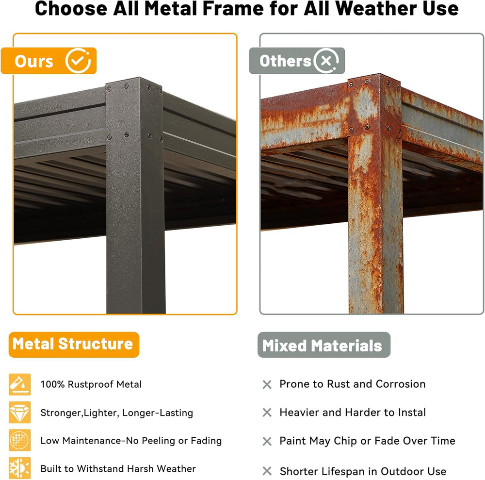 - Durable Galvanized Steel: Powder-coated to resist rust, corrosion, UV rays, and fading