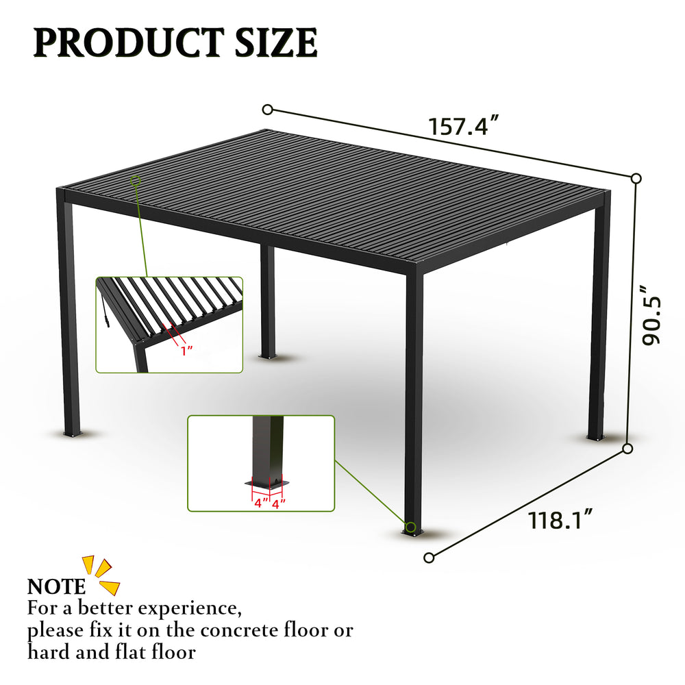 Powder-Coated Aluminum Adjustable Louver Pergola 10x13 Feet