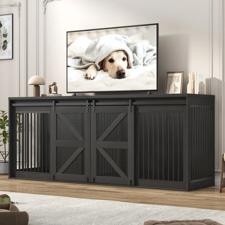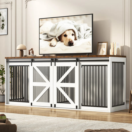 Farmhouse Wooden Large Dog Crate TV Stand Furniture