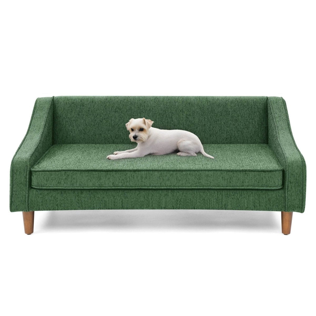Offer your dog a stylish and cozy retreat with this modern elevated dog sofa bed. Featuring a unique irregular armrest design, this pet sofa combines contemporary charm with practical comfort, providing your medium or large dog a perfect spot to relax. The soft green linen upholstery is breathable and durable, keeping your pet cool on warm days while withstanding active use. Elevated with sturdy foot supports, this bed stays clean and dry by lifting off the ground, protecting it from moisture and dirt. Thick foam padding ensures maximum comfort, making it ideal for resting or napping in style. Add a sophisticated touch to your home décor while giving your dog the comfort they deserve. Elevate your pet’s relaxation today.