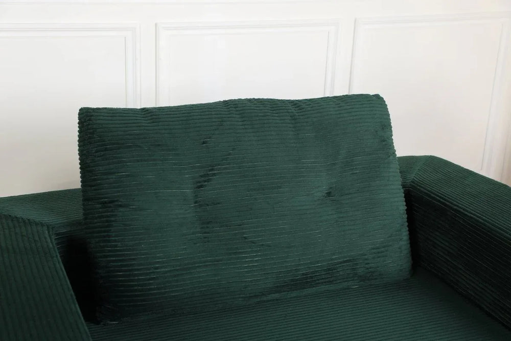 This dark green corduroy floor sofa features high-density memory foam padding and 3-in-1 versatility, easily transforming from a classic bed to a lounge or sofa. Pet-friendly and easy to clean, it suits living rooms, bedrooms, and offices for comfort and relaxation.