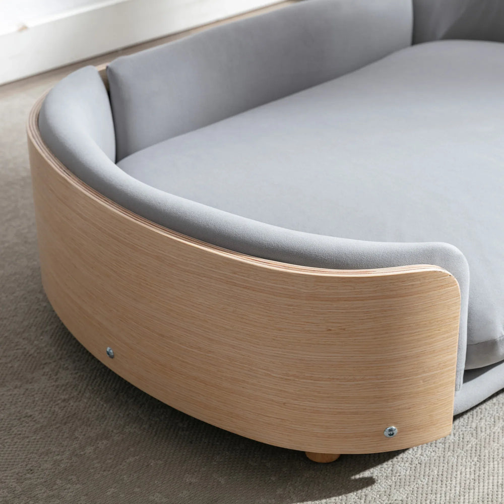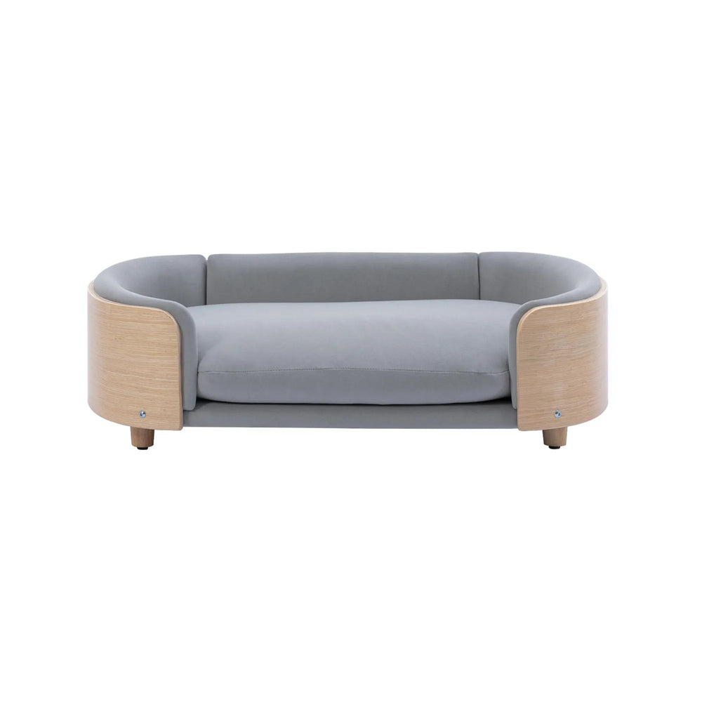 Scandinavian Solid Wood Elevated Pet Sofa Bed With Velvet Cushion