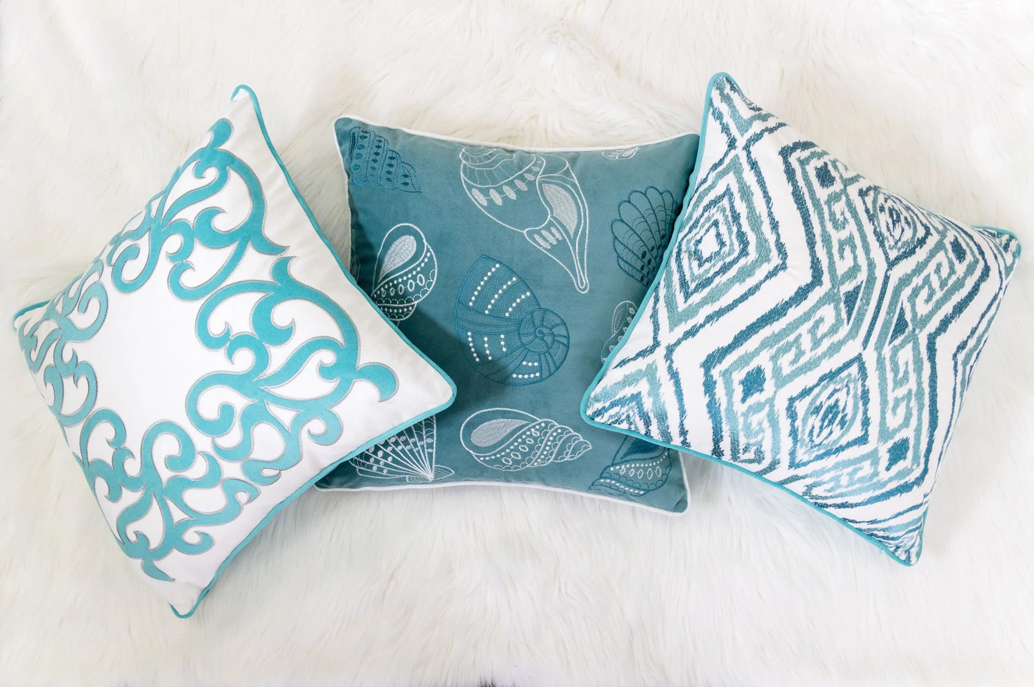 Add Coastal Charm with the Blue and Spa Seashells Decorative Pillow
