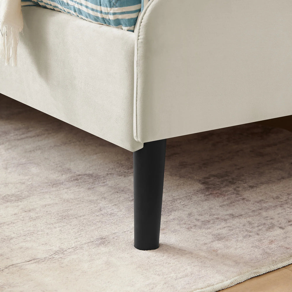 • Velvet Upholstery: Soft beige fabric offers luxurious comfort and style.