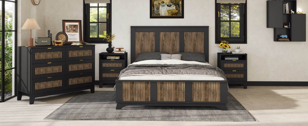 Bring timeless farmhouse charm into your bedroom with this modern wooden platform bed. Featuring rustic wooden strip decoration set against a sleek black finish, it effortlessly blends country warmth with contemporary style. Constructed from durable particle board and supported by sturdy plywood slats, this platform bed provides a reliable foundation for restful sleep. Designed for queen size mattresses, it eliminates the need for a box spring, simplifying your setup and enhancing mattress support. With a strong load capacity up to 700 pounds, it delivers lasting stability and comfort. Its clean, minimalist design complements a variety of décor styles, making it a versatile centerpiece for any bedroom. Easy-to-follow assembly instructions and included tools mean you can elevate your sleep space quickly and effortlessly. Upgrade your bedroom today with this stylish, supportive platform bed that balances form and function.