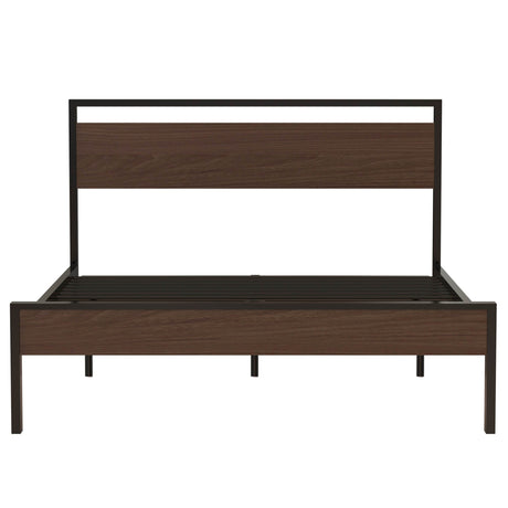 Queen Metal Platform Bed Frame With Wooden Headboard