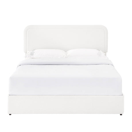Queen Ivory Boucle Upholstered Platform Bed Frame With Storage