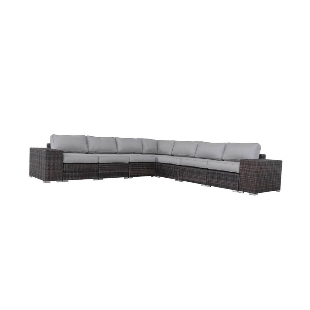 Upgrade your outdoor living space with this modern, fully assembled sectional lounge set featuring durable grey mix wicker and plush foam cushions. Designed for ultimate relaxation, it offers the perfect blend of style and functionality. The sturdy aluminum frame supports up to 2,100 pounds, ensuring lasting strength and stability for everyday use and social gatherings. Each of the 15 cushions is made with weather-resistant, UV-protected fabric that resists stains and moisture, while the high-density open-cell foam filler balances softness with support. With clip-secured cushions and removable, machine-washable covers, upkeep is effortless. Ideal for patios, gardens, or poolside retreats, this set delivers indoor comfort in an outdoor-friendly design. Enjoy luxury seating without any assembly hassle—just unpack and relax. Elevate your outdoor relaxation today.