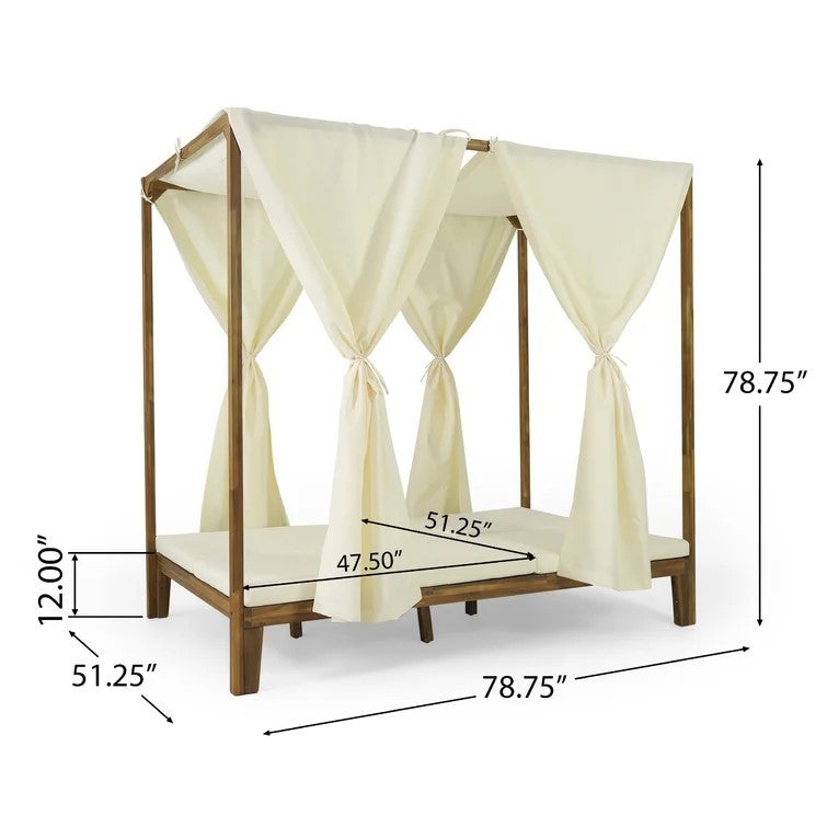 Teak Wood Outdoor Daybed With Water-Resistant Curtains