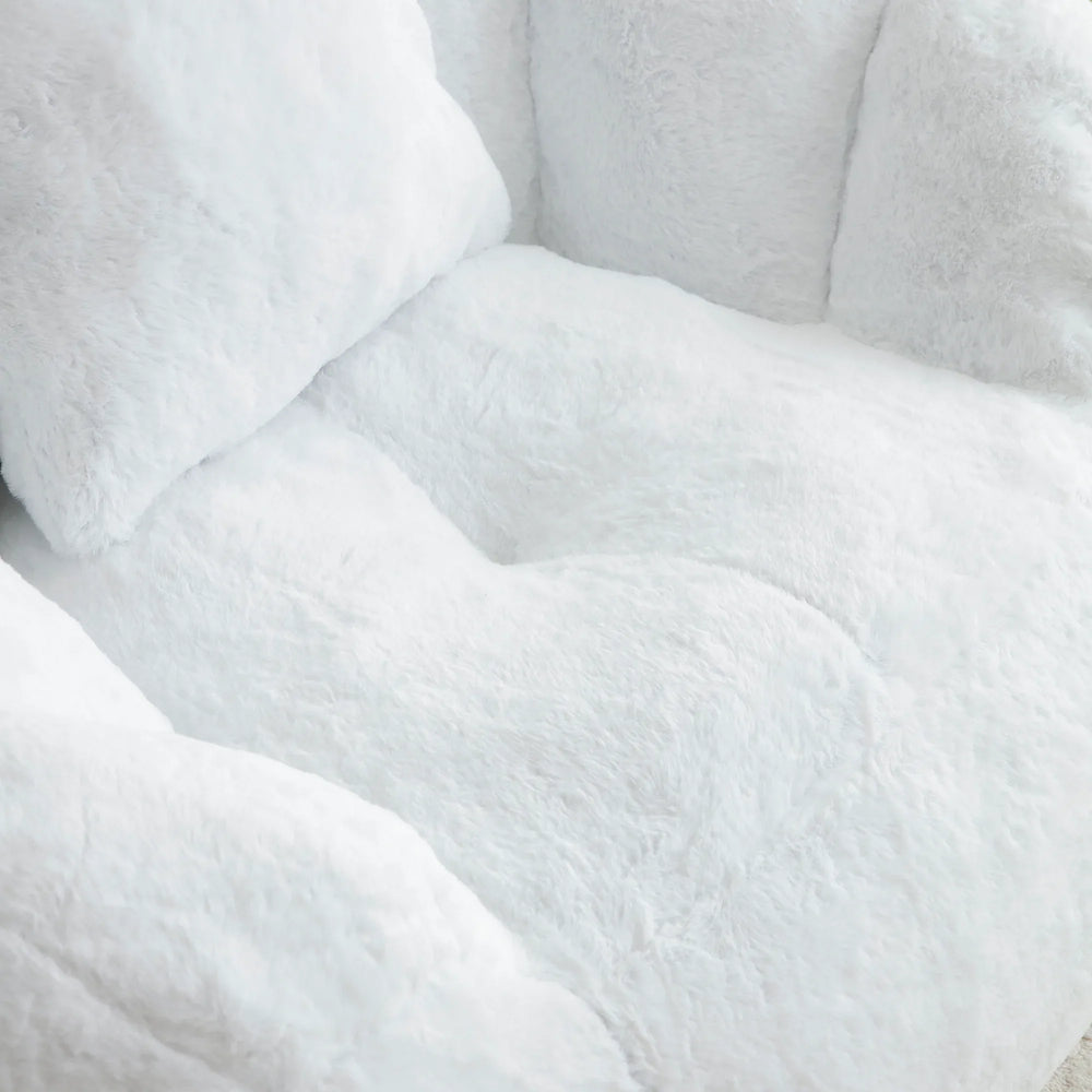 Relax in style and comfort with this oversized bean bag chair, designed to bring cozy warmth and modern flair to your living space. Wrapped in plush white faux fur, it offers a soft, inviting texture that enhances any room’s atmosphere. The unique shell shape combines aesthetics with ergonomic support, featuring armrests and a backrest that cradle your body for long-lasting comfort. Filled with eco-friendly high-density foam chunks, this chair molds to your shape while retaining resilience and support. Perfect for gaming, reading, or lounging, it comes with a matching footstool to rest your feet and elevate relaxation. Its generous size accommodates both adults and kids, making it a versatile accent sofa that blends seamlessly with a variety of decor styles. Allow 48 hours for full rebound after unpacking and enjoy a durable, shape-retaining seating solution that invites you to unwind every day. Elevate your relaxation today.
