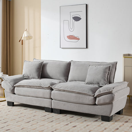 Light Grey Corduroy Upholstered Sofa Loveseat With Pillows