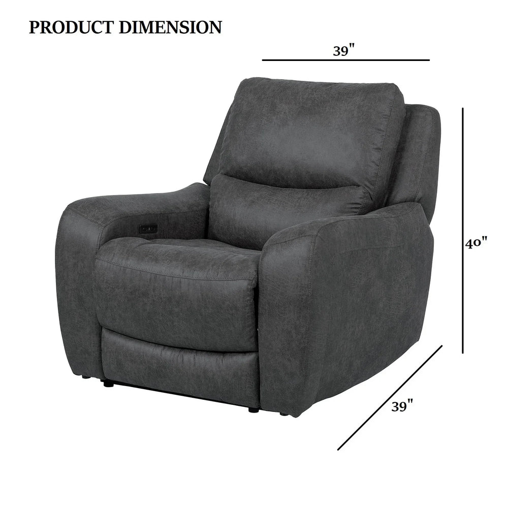 Upgrade your living space with this modern power recliner crafted for supreme comfort and style. Featuring an oversized 1.5-seat design and soft track arms, it invites you to relax in spacious luxury. Built on a durable corner-blocked kiln-dried hardwood frame with engineered wood accents, this recliner ensures lasting stability and support. The high-density 2.0 lb. foam cushions provide plush seating while the sinuous spring suspension delivers balanced comfort that adapts to your body. Its sleek dark gray finish blends effortlessly with a range of decor styles, from neutral to bold. Perfect for unwinding after a long day or adding a stylish focal point to your primary living space. Easy to assemble and equipped with smooth power reclining, elevate your relaxation today.