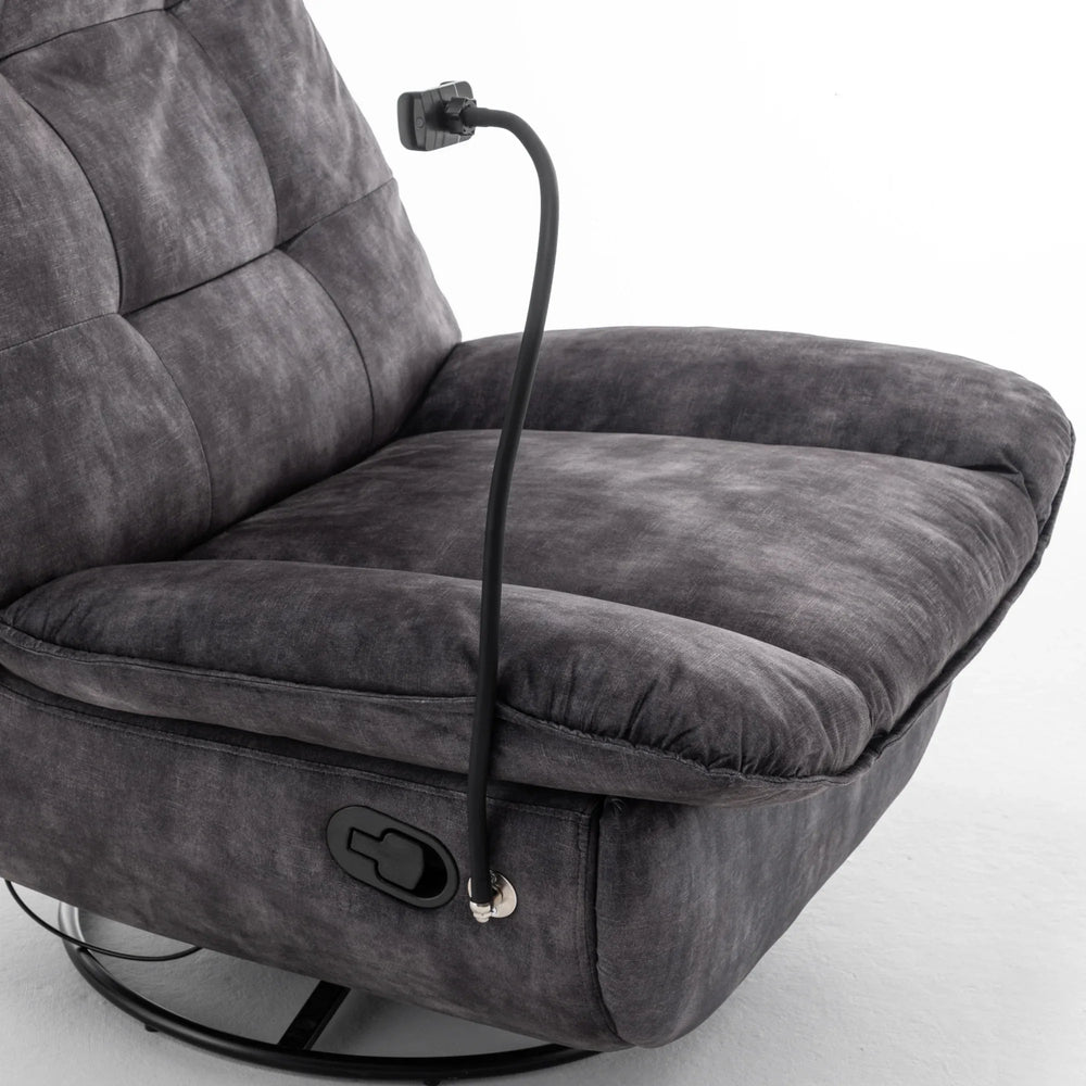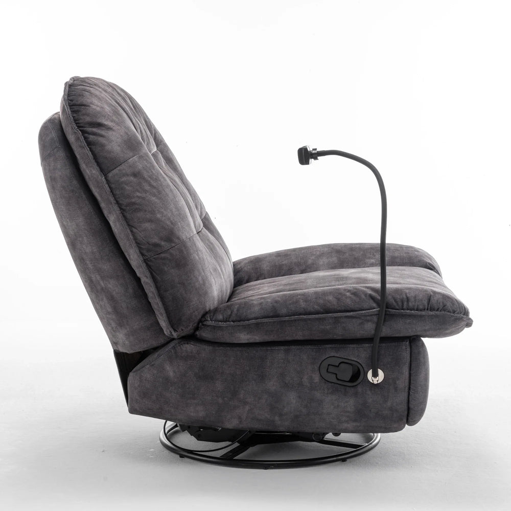 Modern Black Velvet Swivel Gliding Recliner Chair With Phone Holder